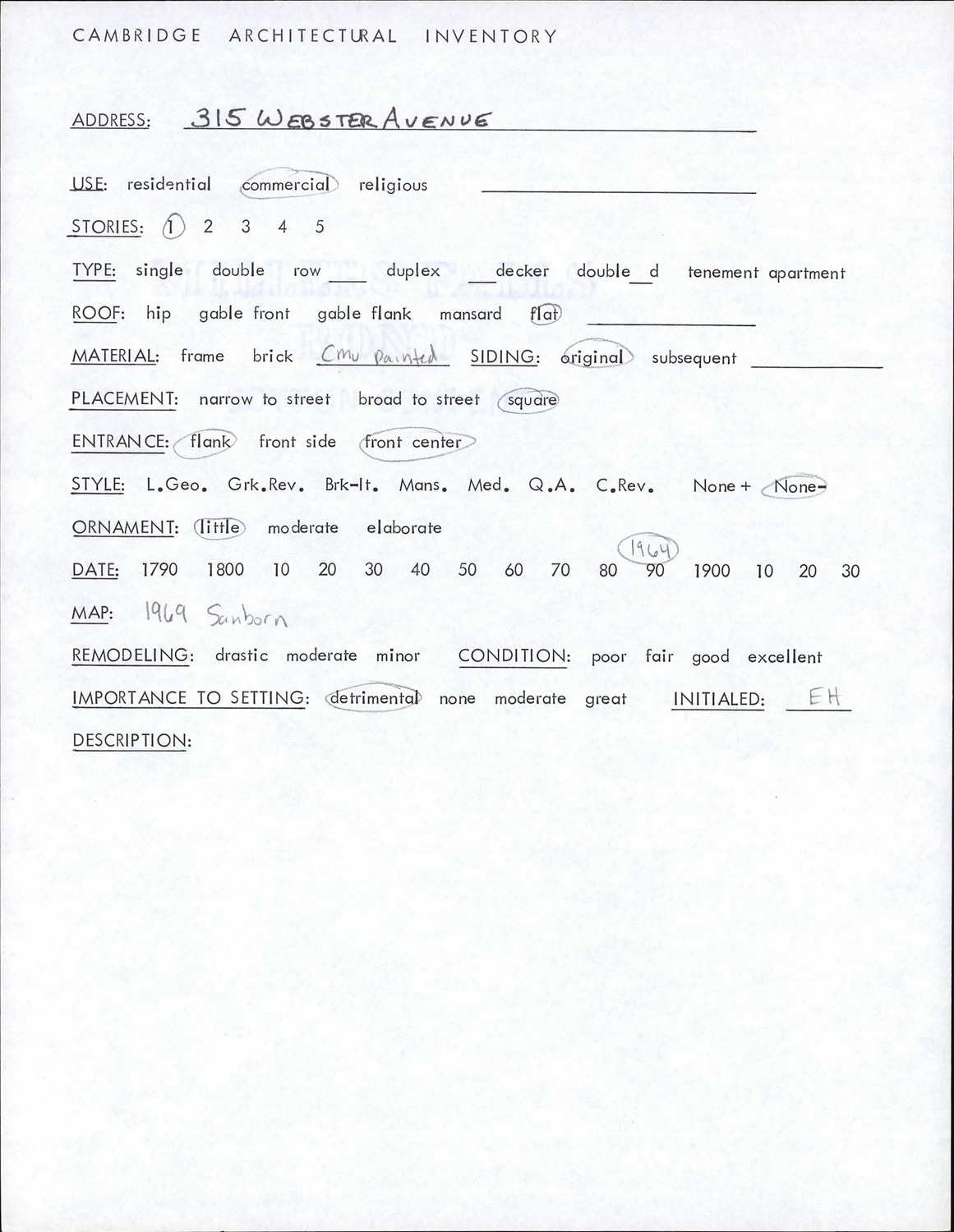 315 Webster Ave - Architectural Inventory Form