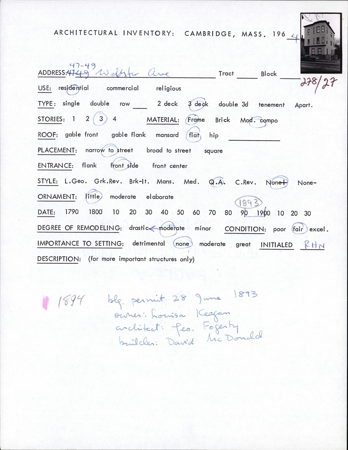 47-49 Webster Ave - Architectural Inventory Form