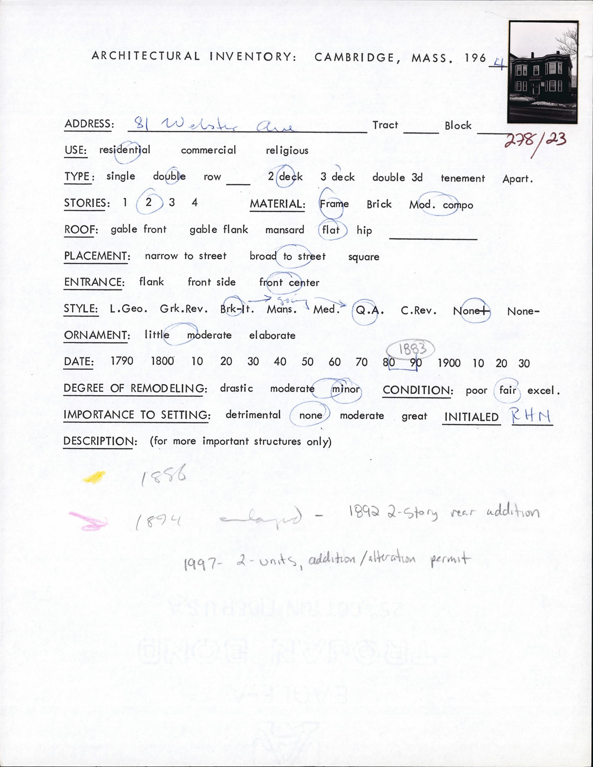 - Cambridge Historical Commission, Digital Architectural Survey and History.