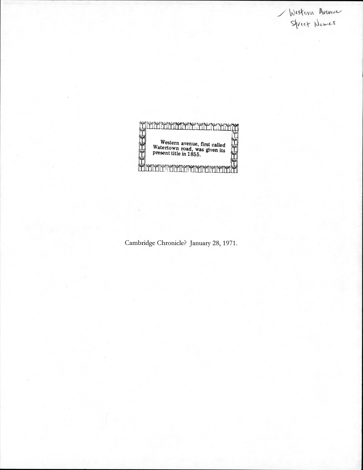 Western Ave - Published Material