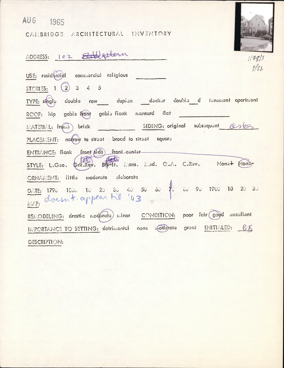 102 Western Ave - Architectural Inventory Form