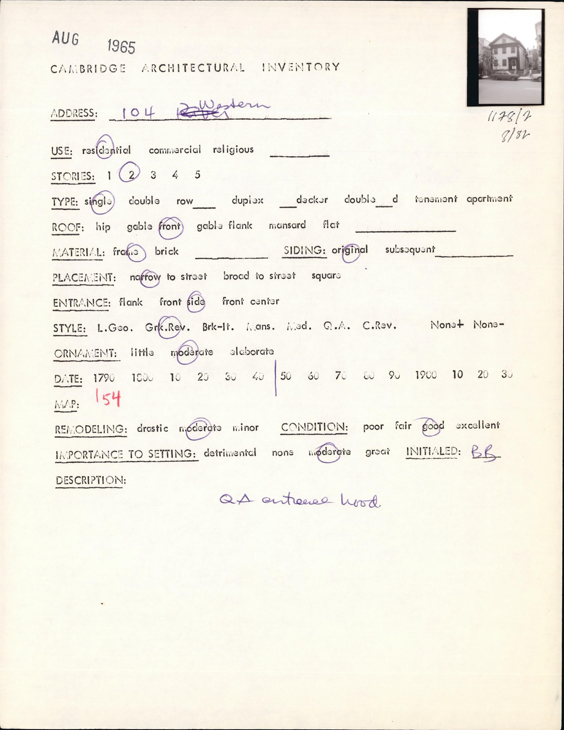 - Cambridge Historical Commission, Digital Architectural Survey and History.