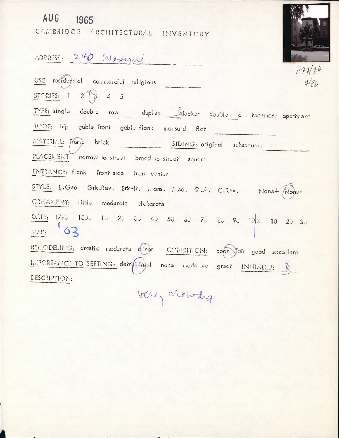 240 Western Ave - Architectural Inventory Form