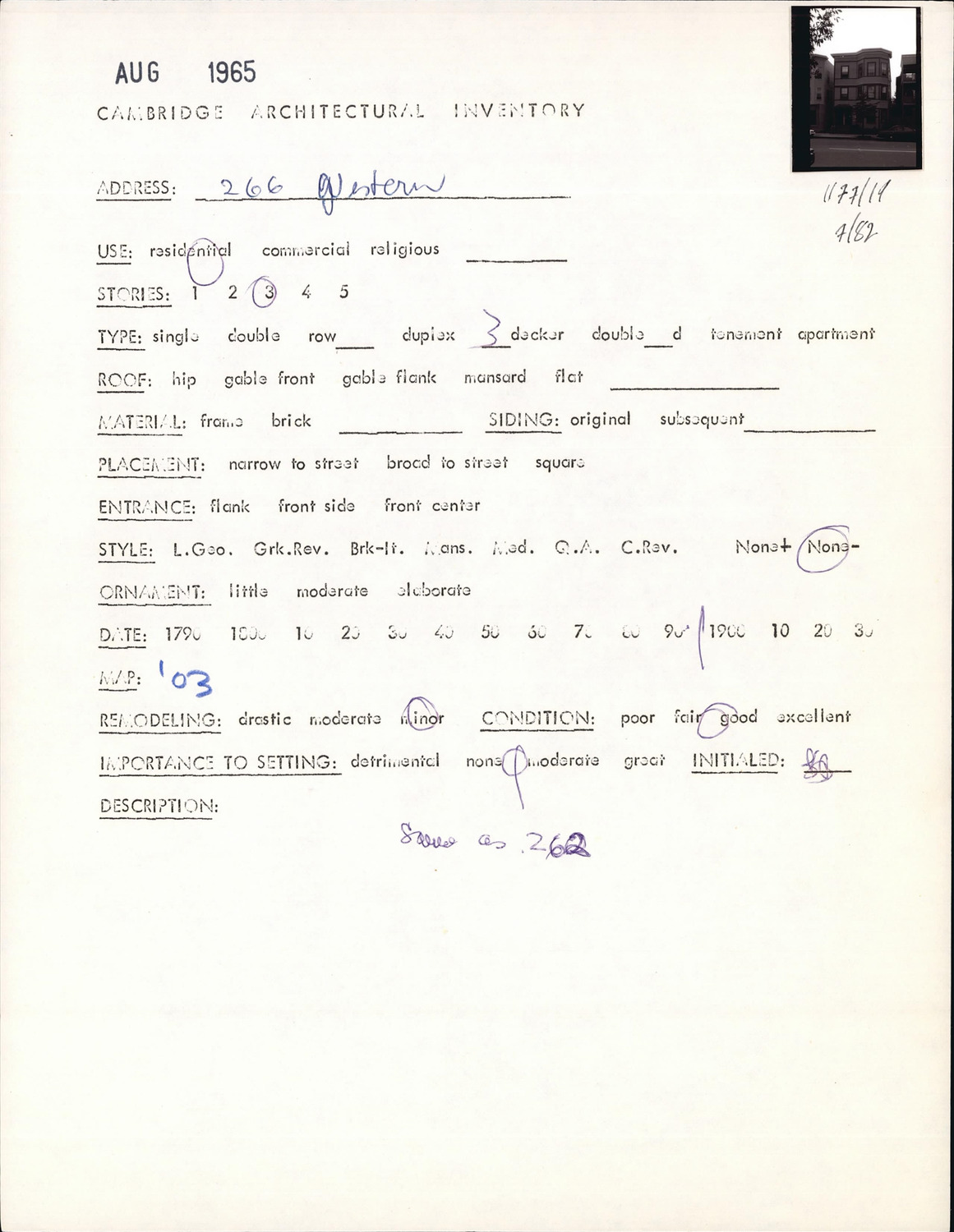 - Cambridge Historical Commission, Digital Architectural Survey and History.