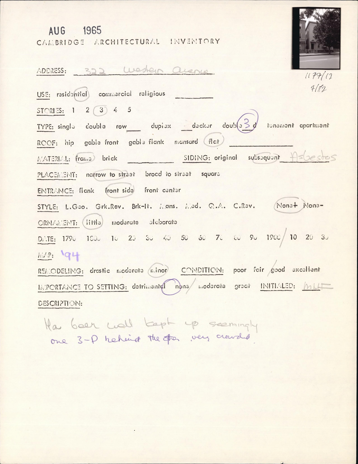 - Cambridge Historical Commission, Digital Architectural Survey and History.