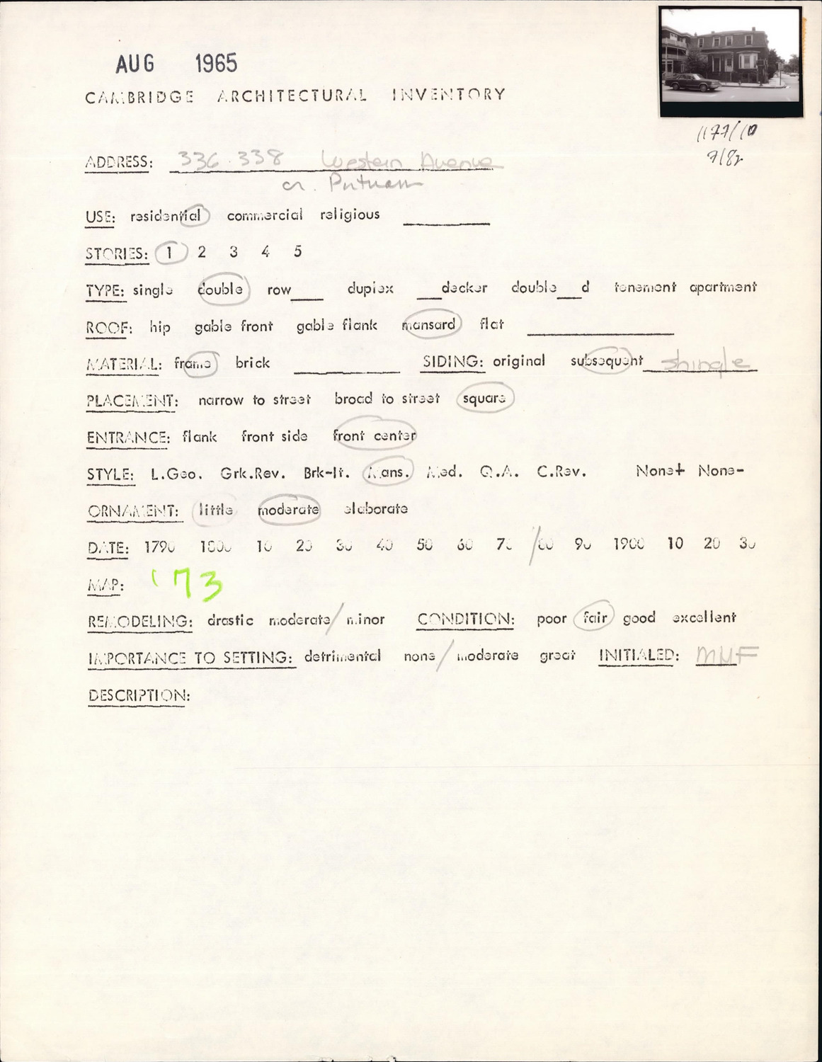- Cambridge Historical Commission, Digital Architectural Survey and History.