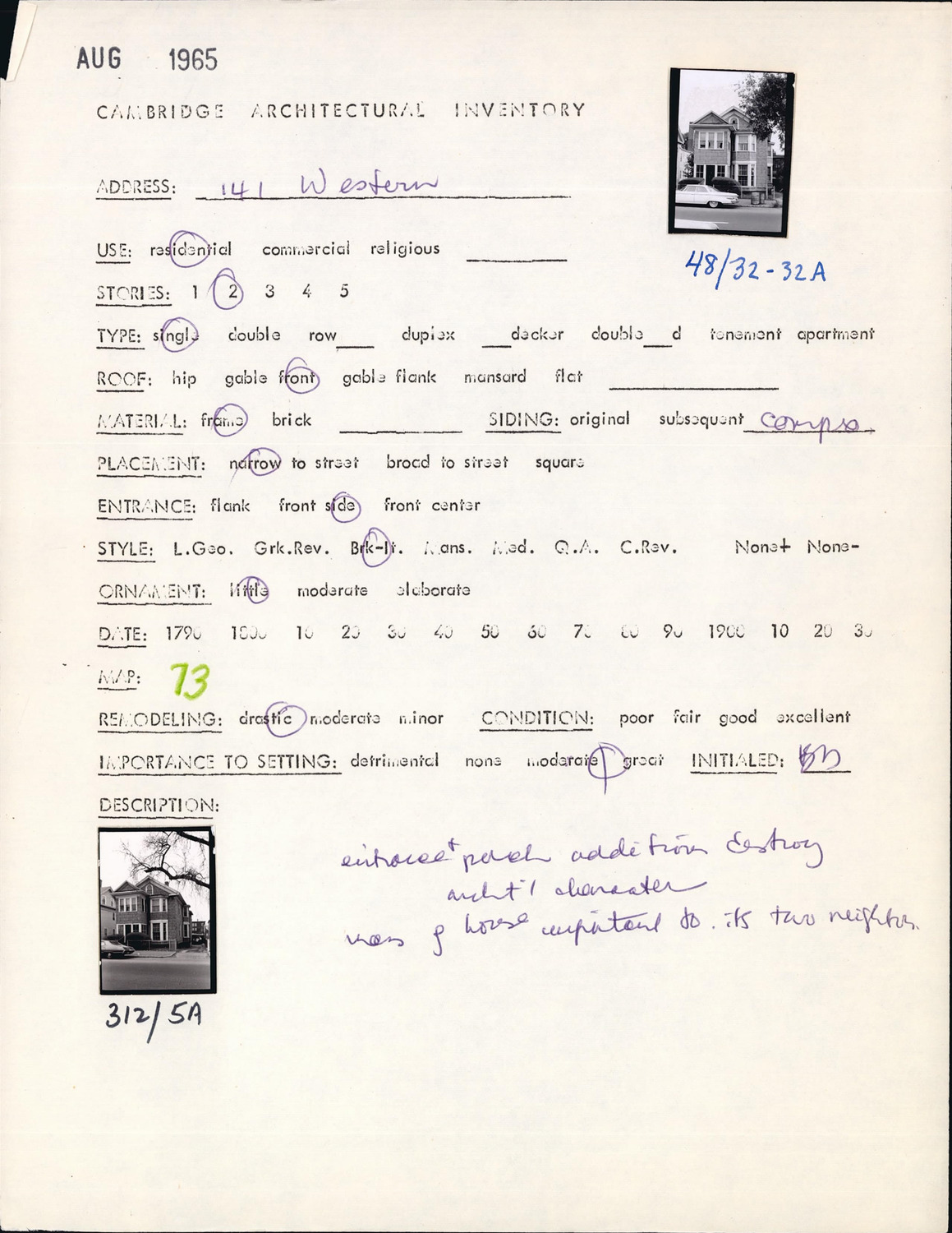 - Cambridge Historical Commission, Digital Architectural Survey and History.