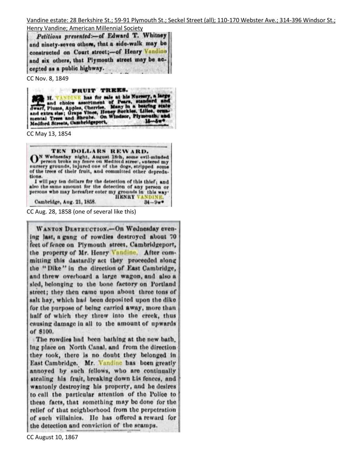 - Cambridge Historical Commission, Digital Architectural Survey and History.