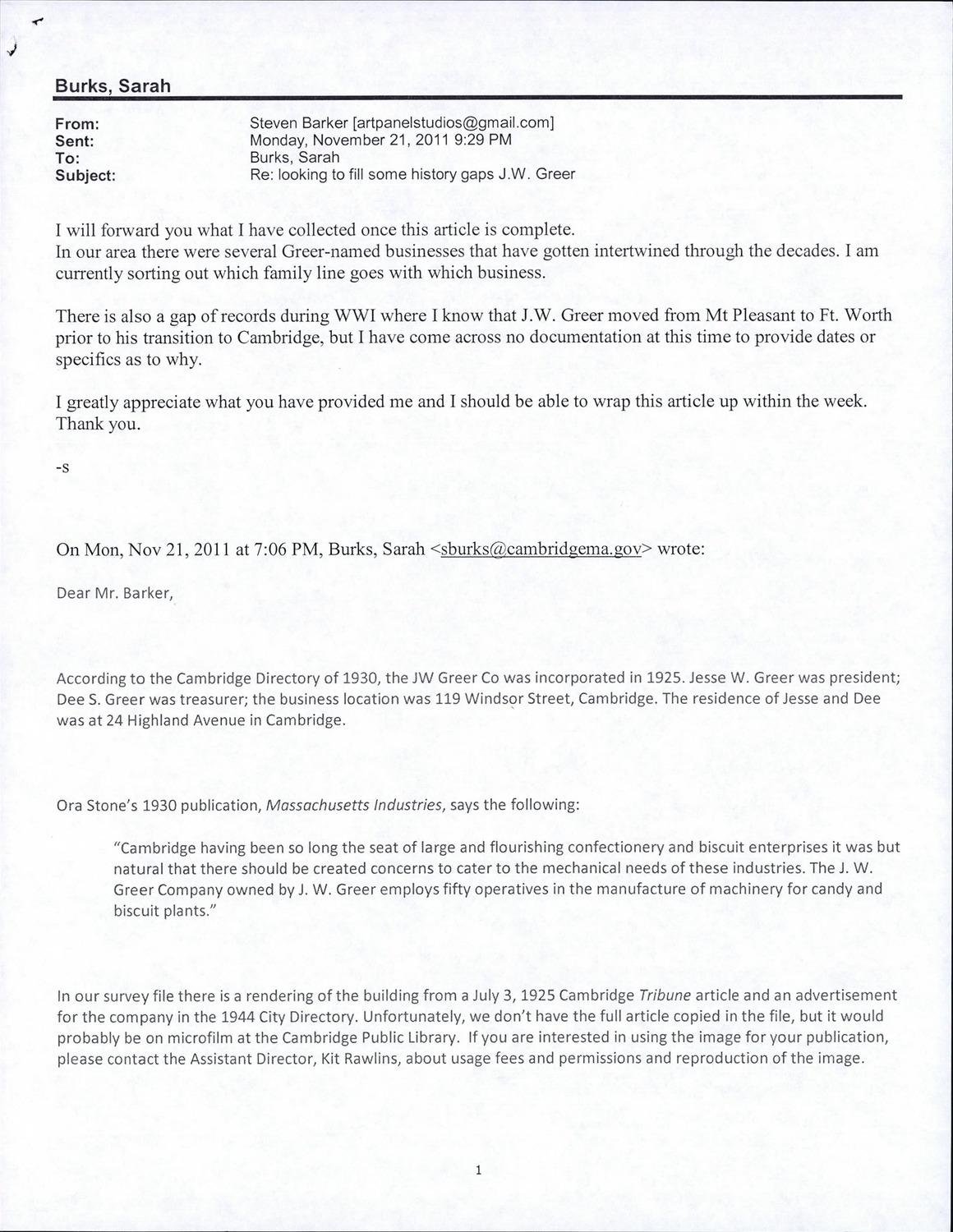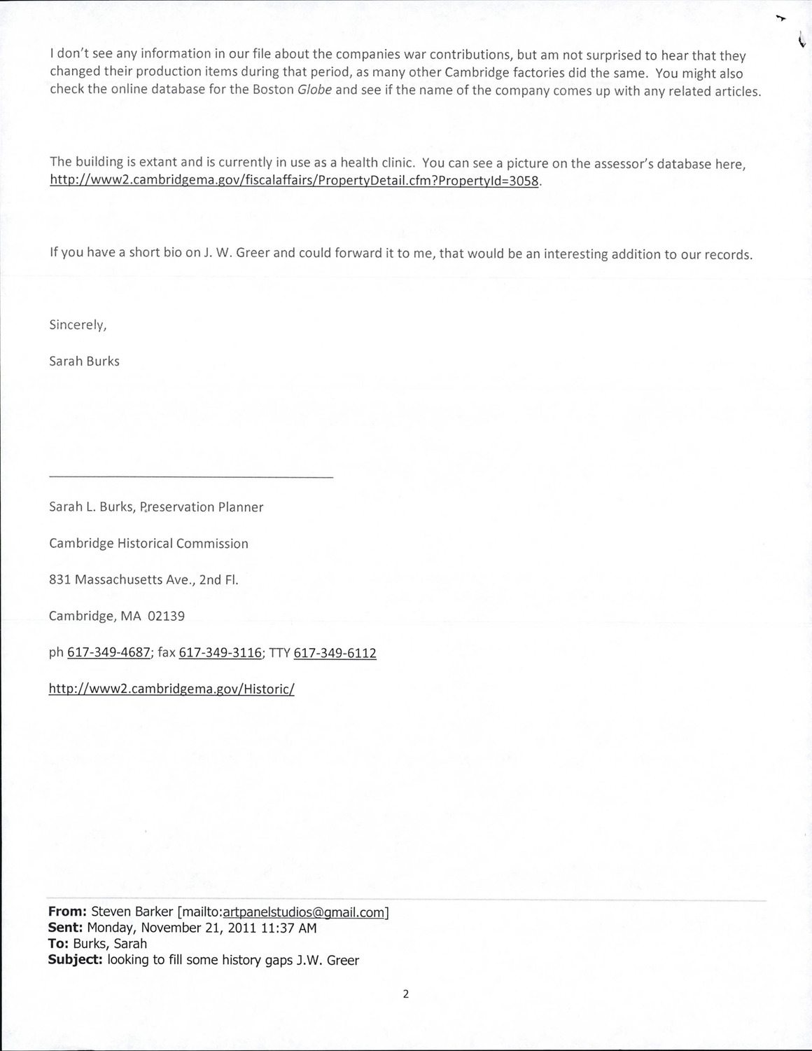 121-137 Windsor St - Correspondence