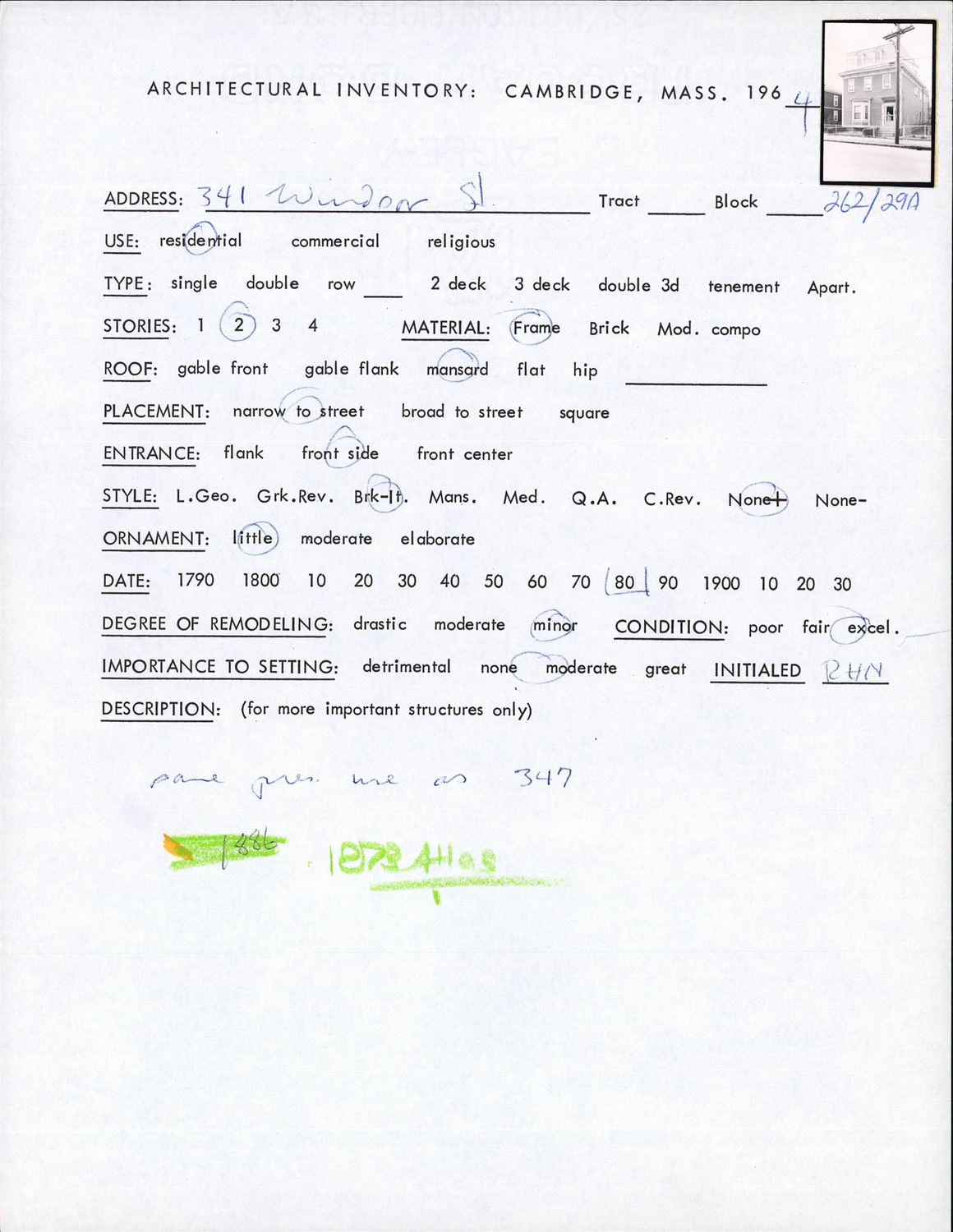 341 Windsor St - Architectural Inventory Form
