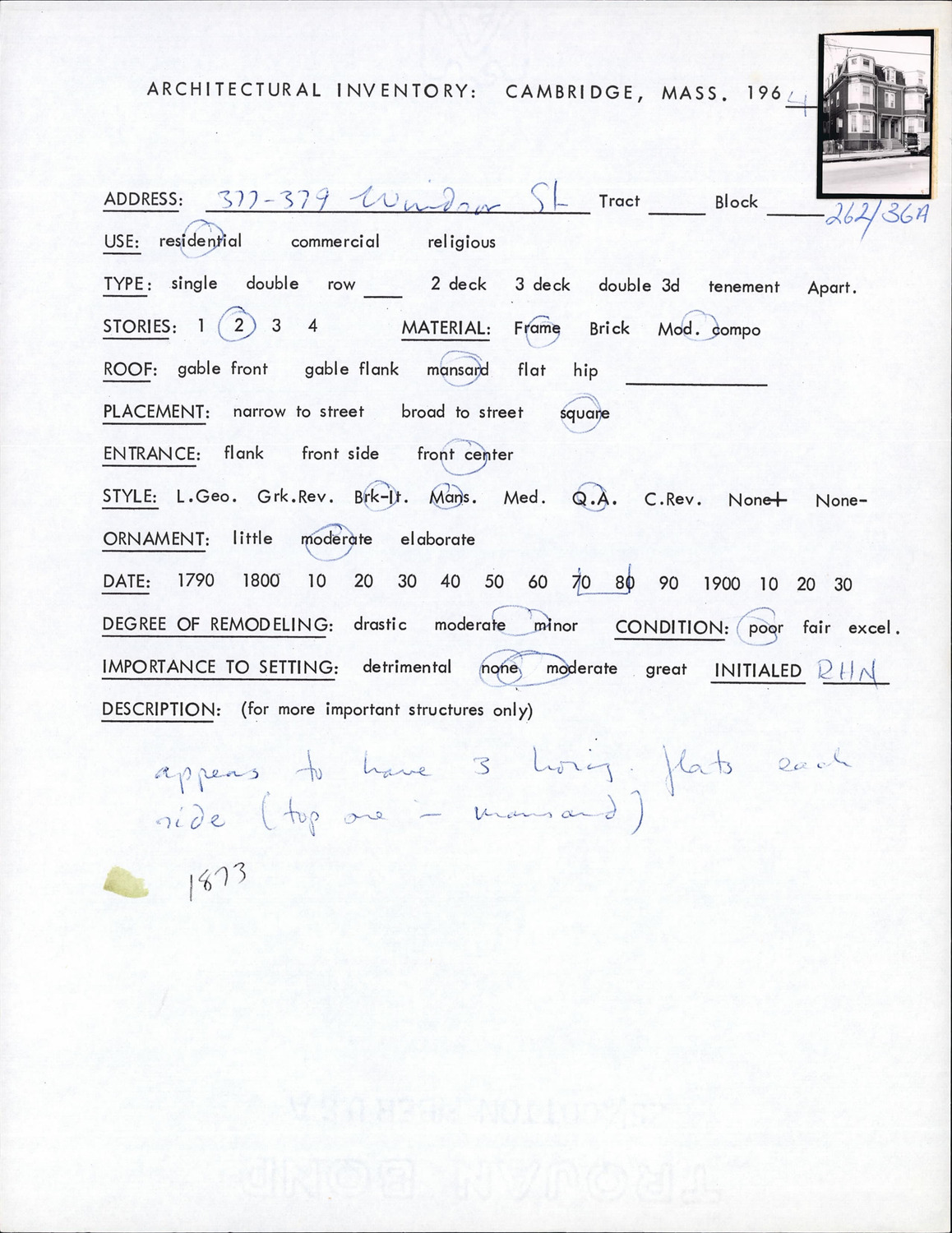 377-379 Windsor St - Architectural Inventory Form