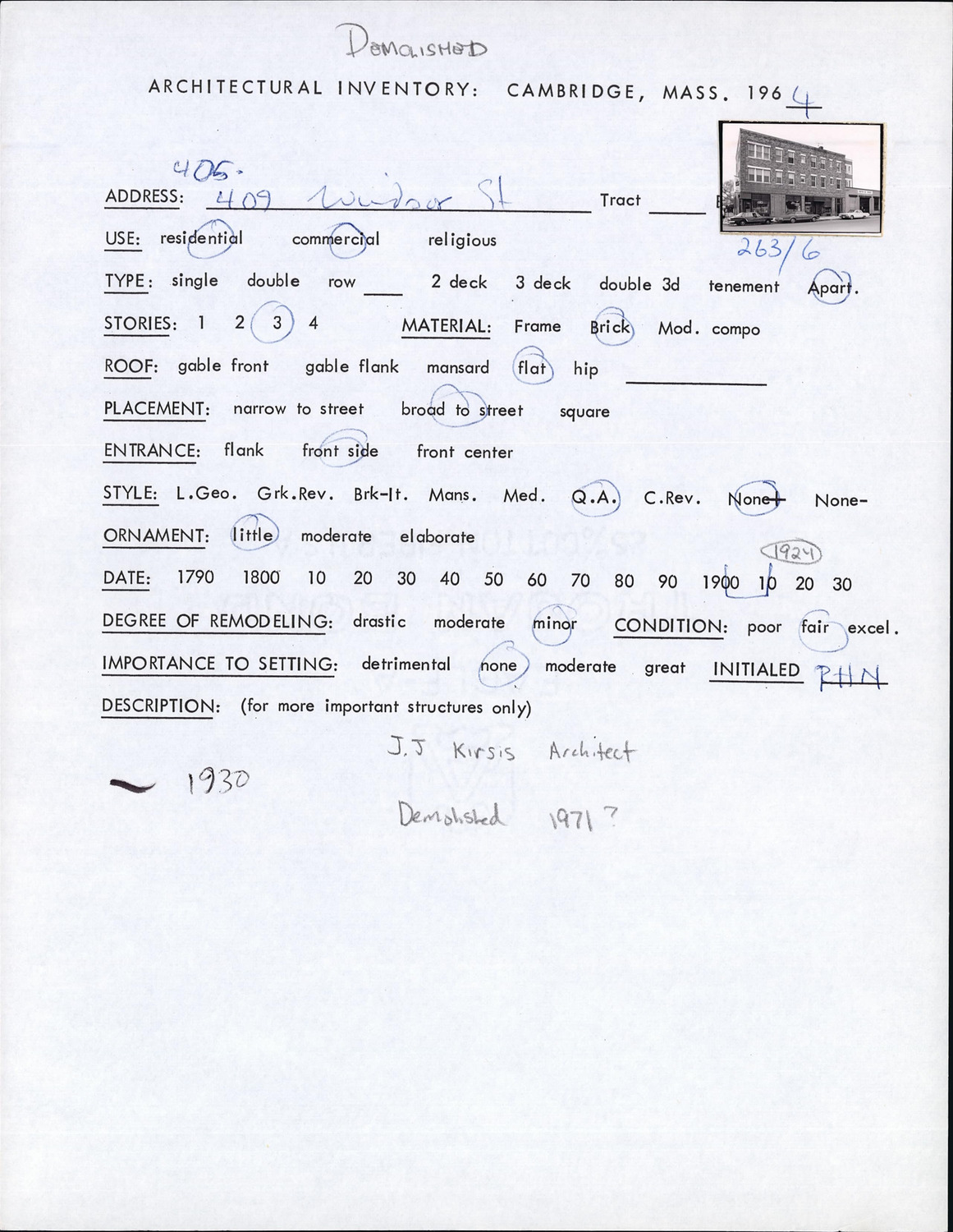 - Cambridge Historical Commission, Digital Architectural Survey and History.