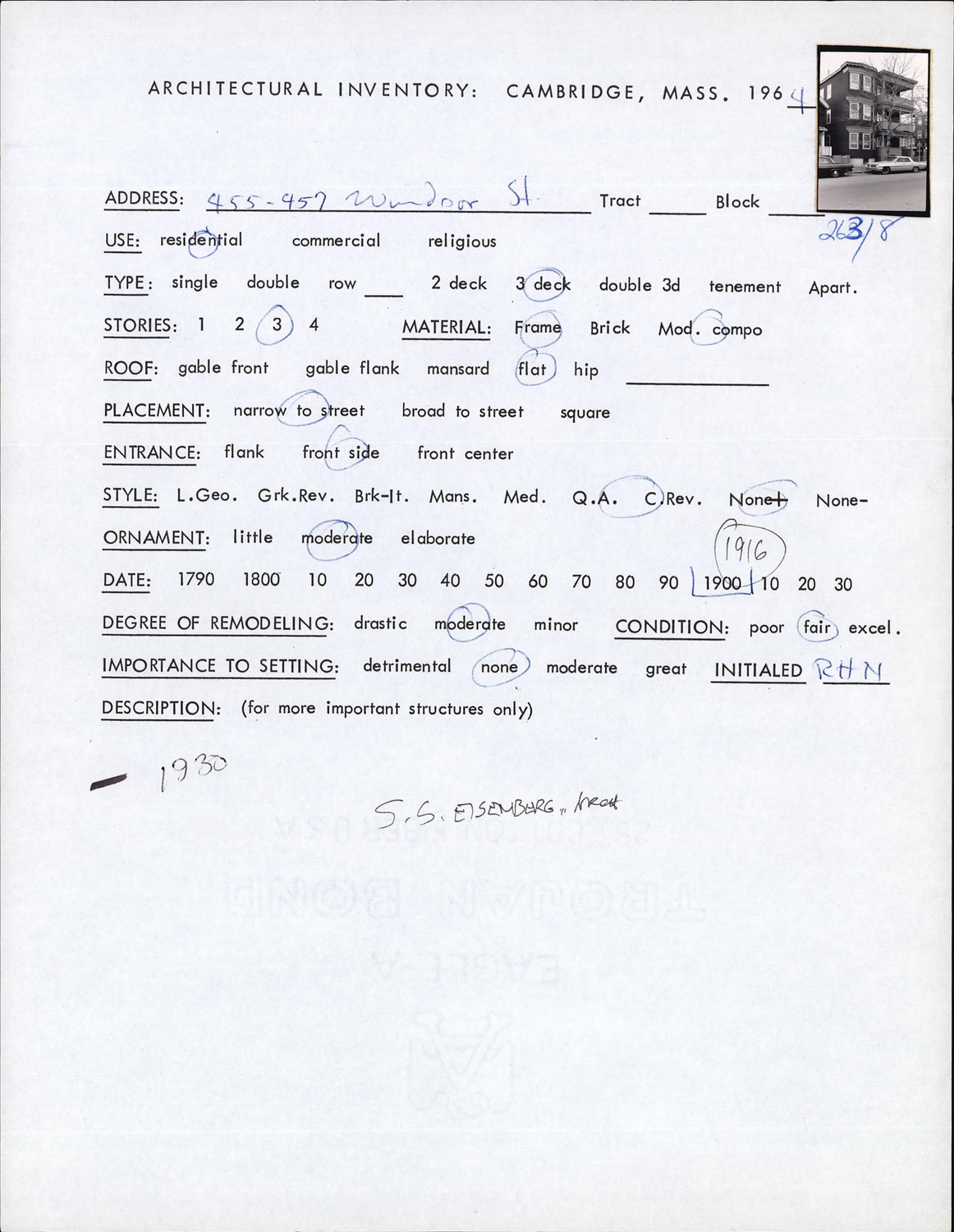 455-457 Windsor St - Architectural Inventory Form