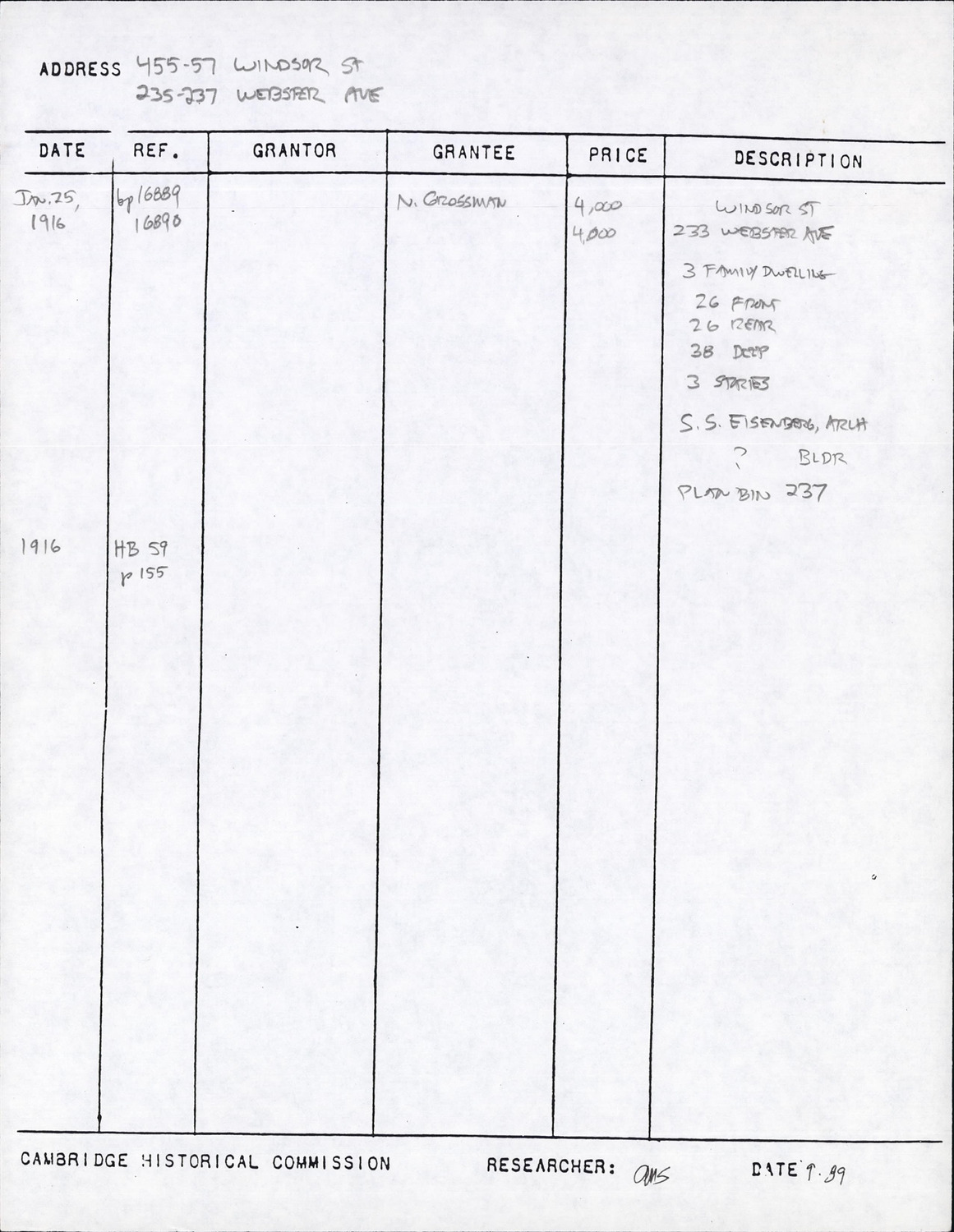 - Cambridge Historical Commission, Digital Architectural Survey and History.