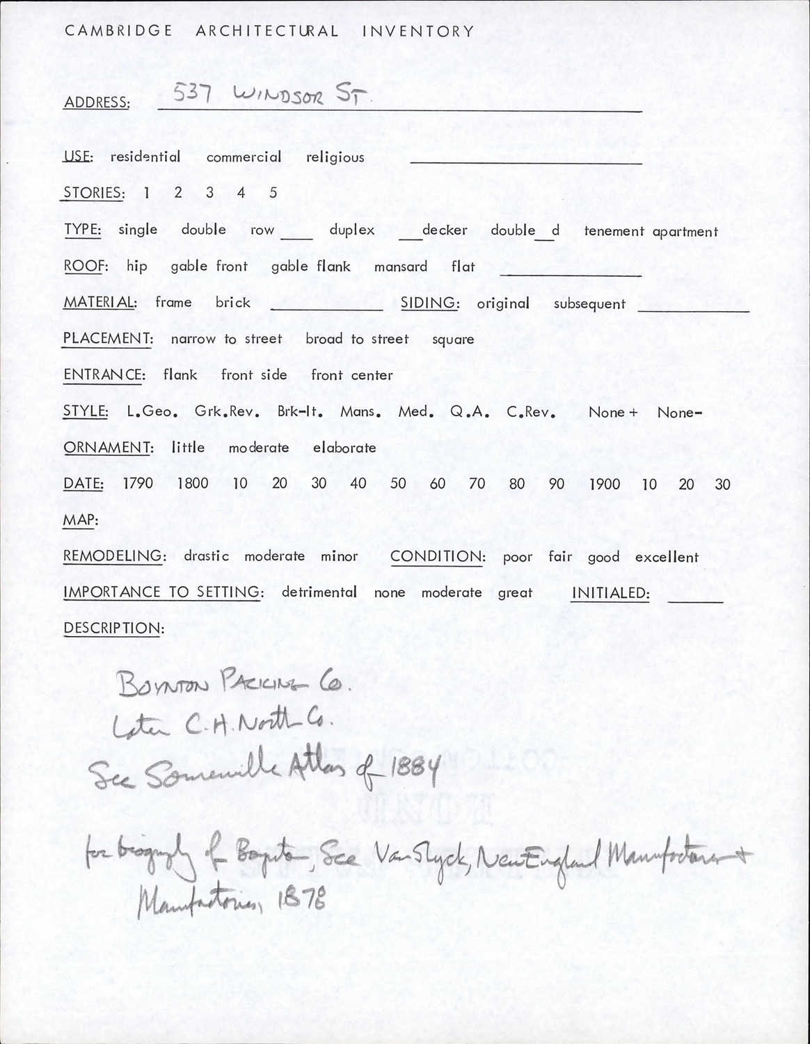 537 Windsor St - Architectural Inventory Form