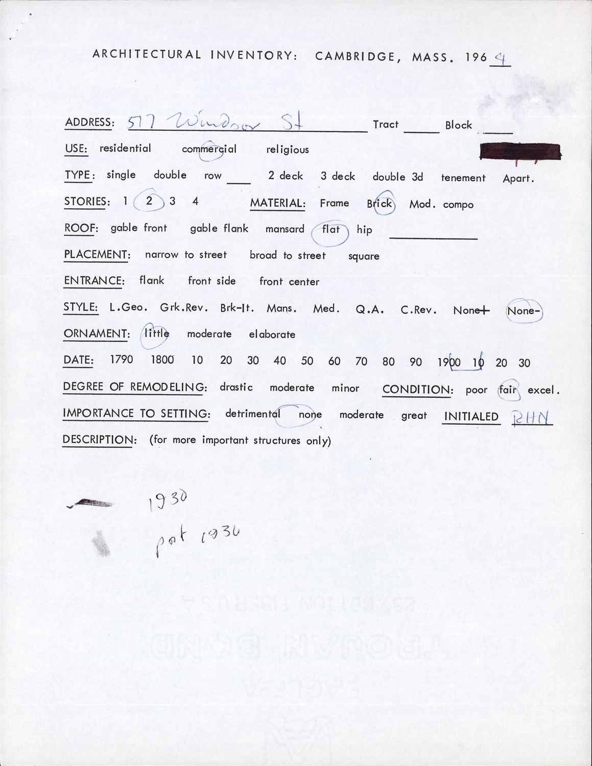 - Cambridge Historical Commission, Digital Architectural Survey and History.