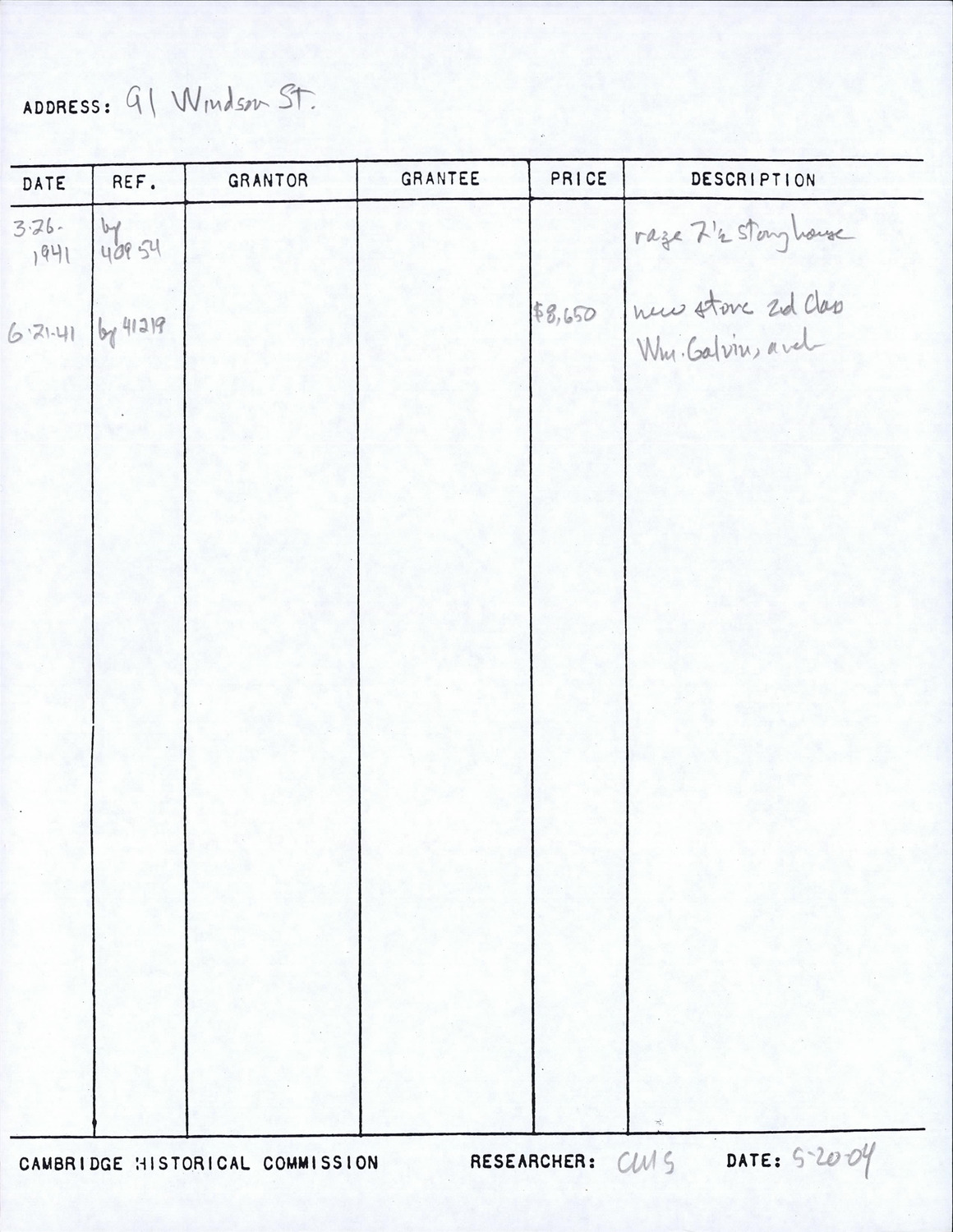 91 Windsor St - Research Form