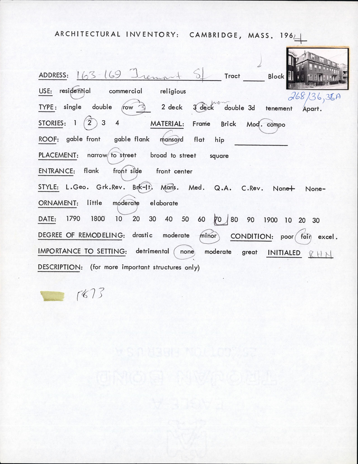163-169 Tremont St - Architectural Inventory Form