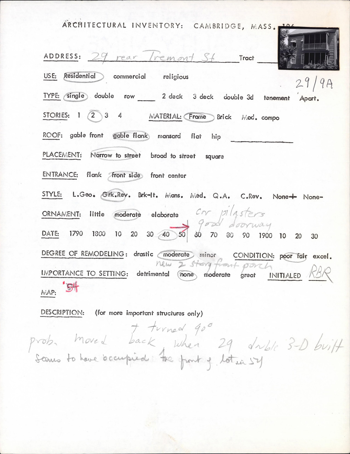 29R Tremont St - Architectural Inventory Form