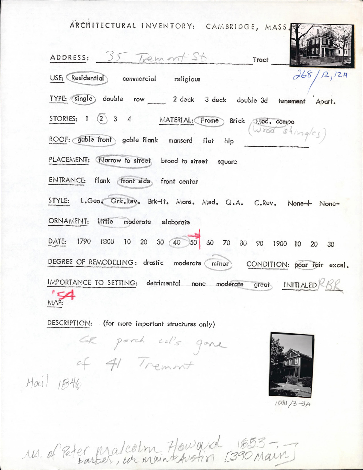 35 Tremont St - Architectural Inventory Form