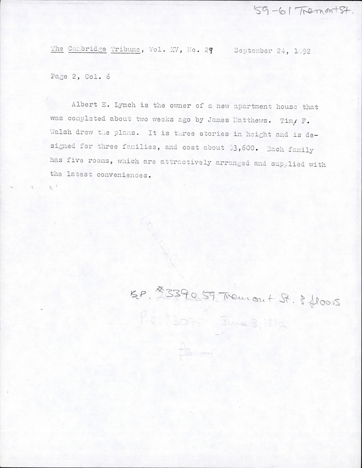 59-61 Tremont St - Published Material