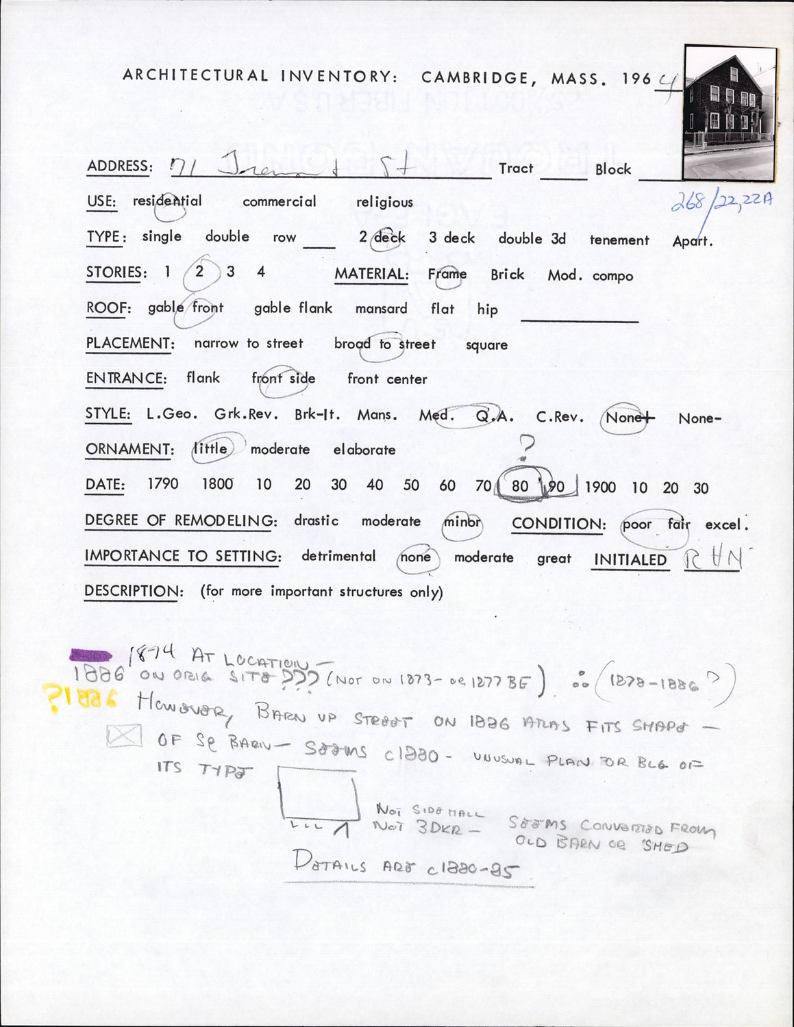 - Cambridge Historical Commission, Digital Architectural Survey and History.