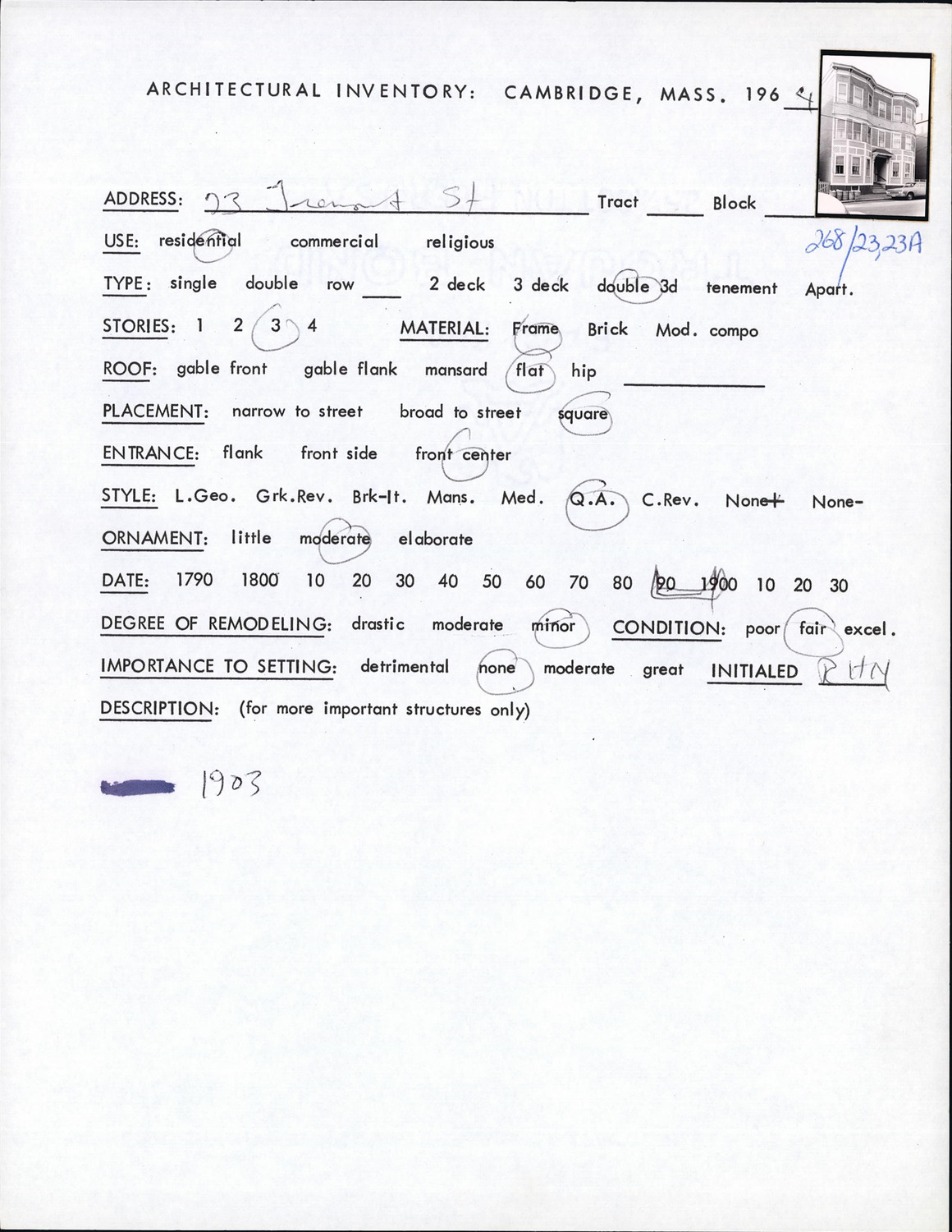 73 Tremont St - Architectural Inventory Form