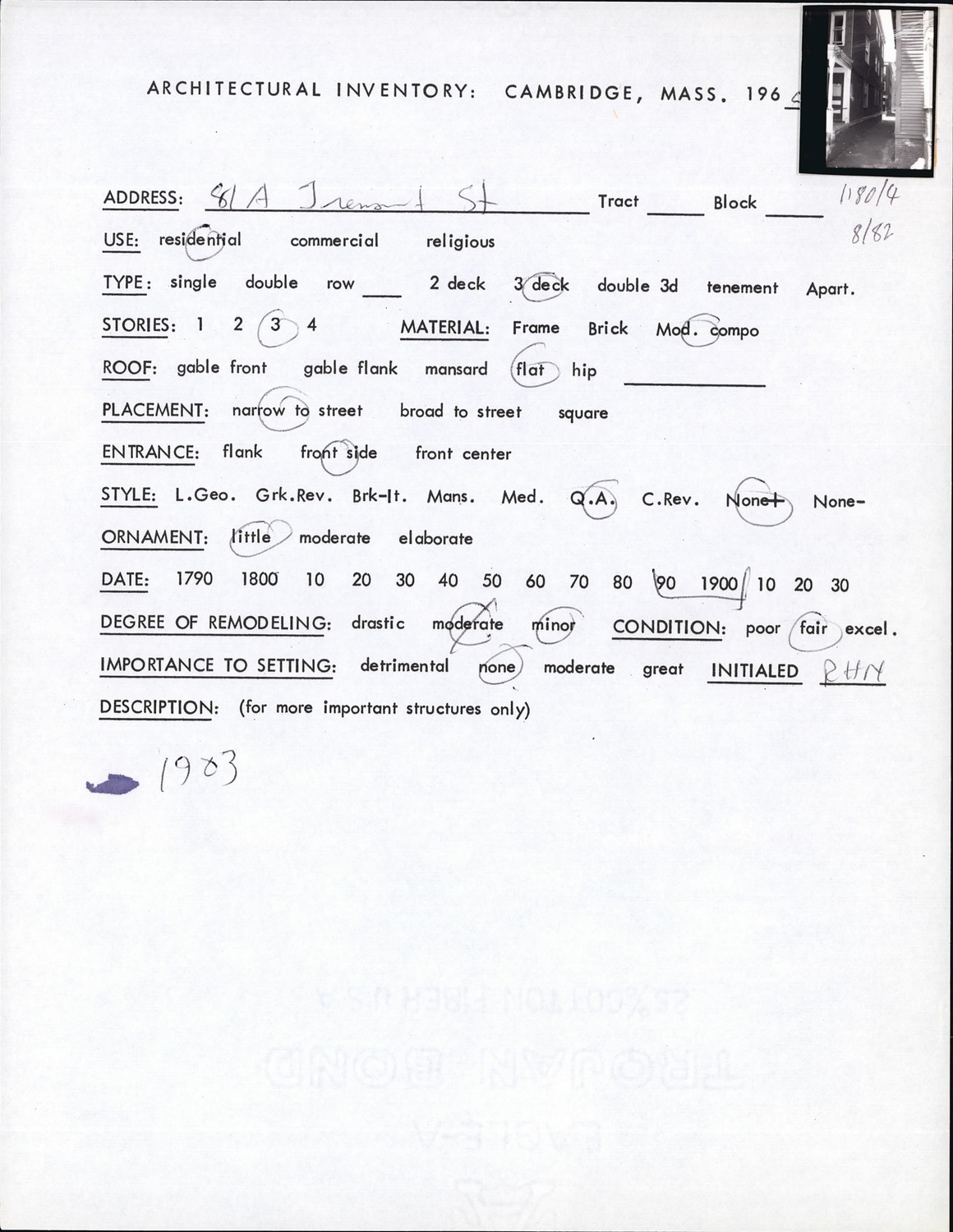 81A Tremont St - Architectural Inventory Form