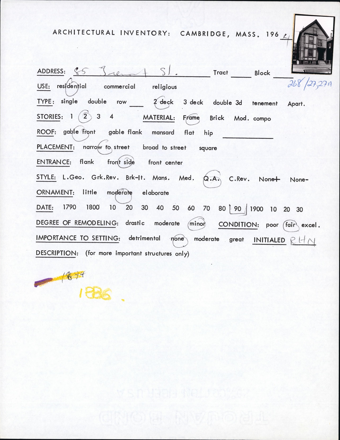 85 Tremont St - Architectural Inventory Form