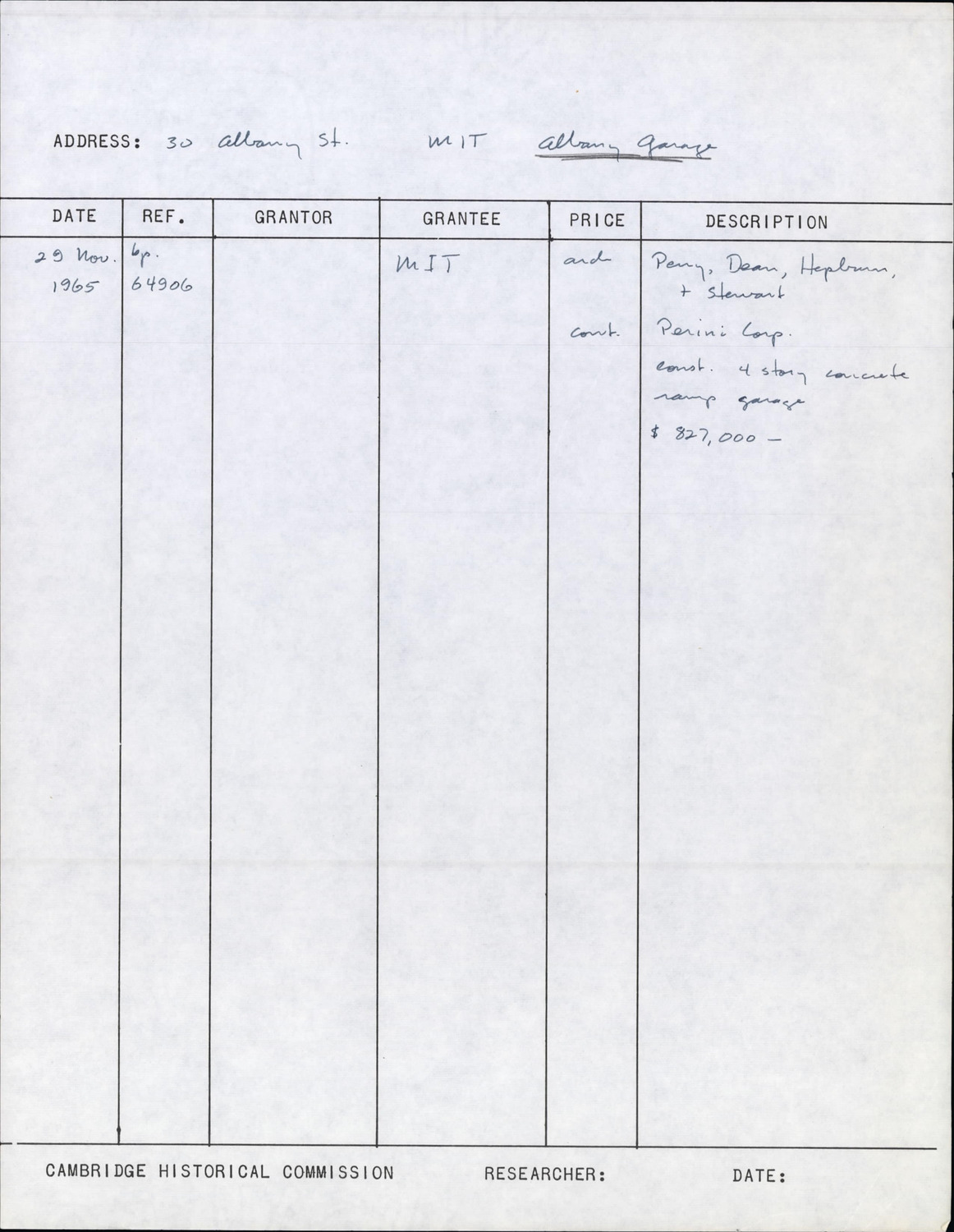 20-36 Albany St - MIT Blg N4 - Albany Garage - Research Form