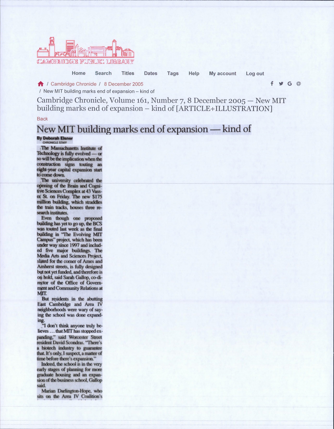 - Cambridge Historical Commission, Digital Architectural Survey and History.