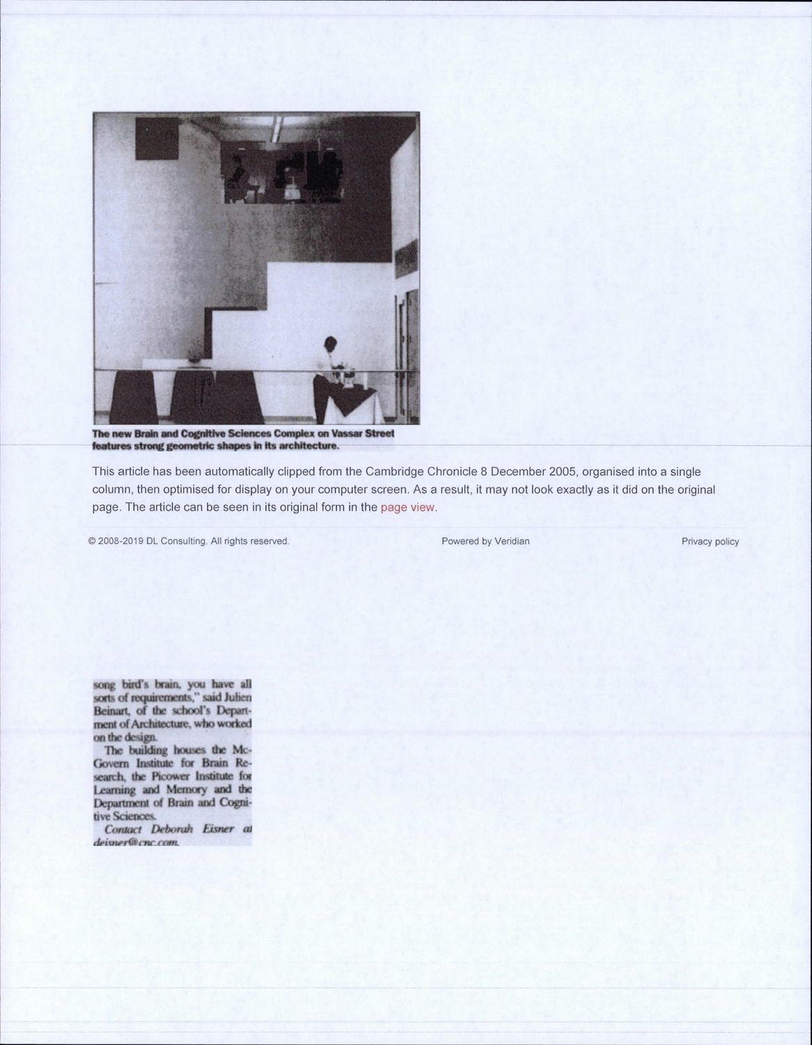 43 Vassar St - MIT Bldg 46 - Brain and Cognitive Science Center - Published Material