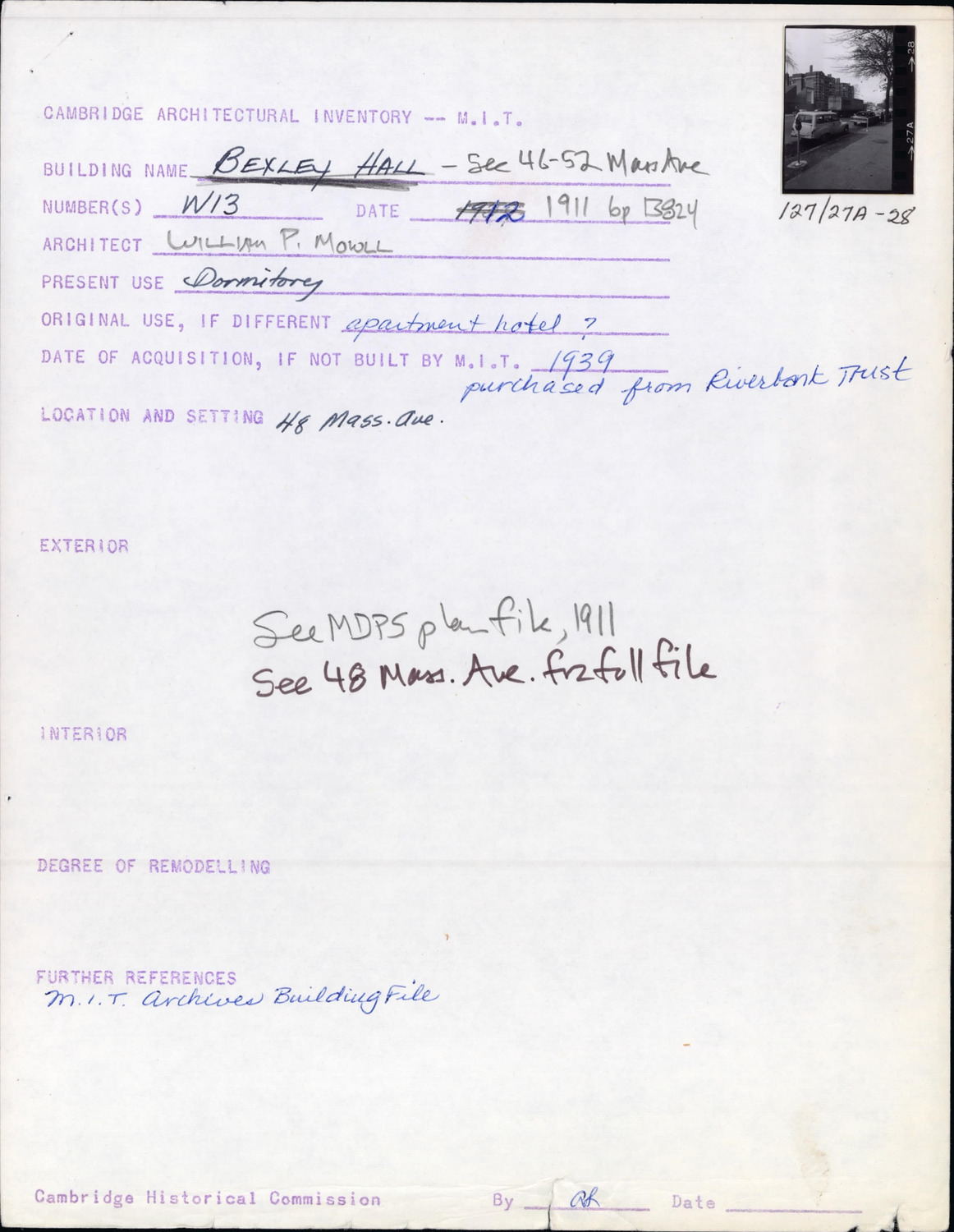 48 Massachusetts Ave - MIT Bexley Hall - Architectural Inventory Form