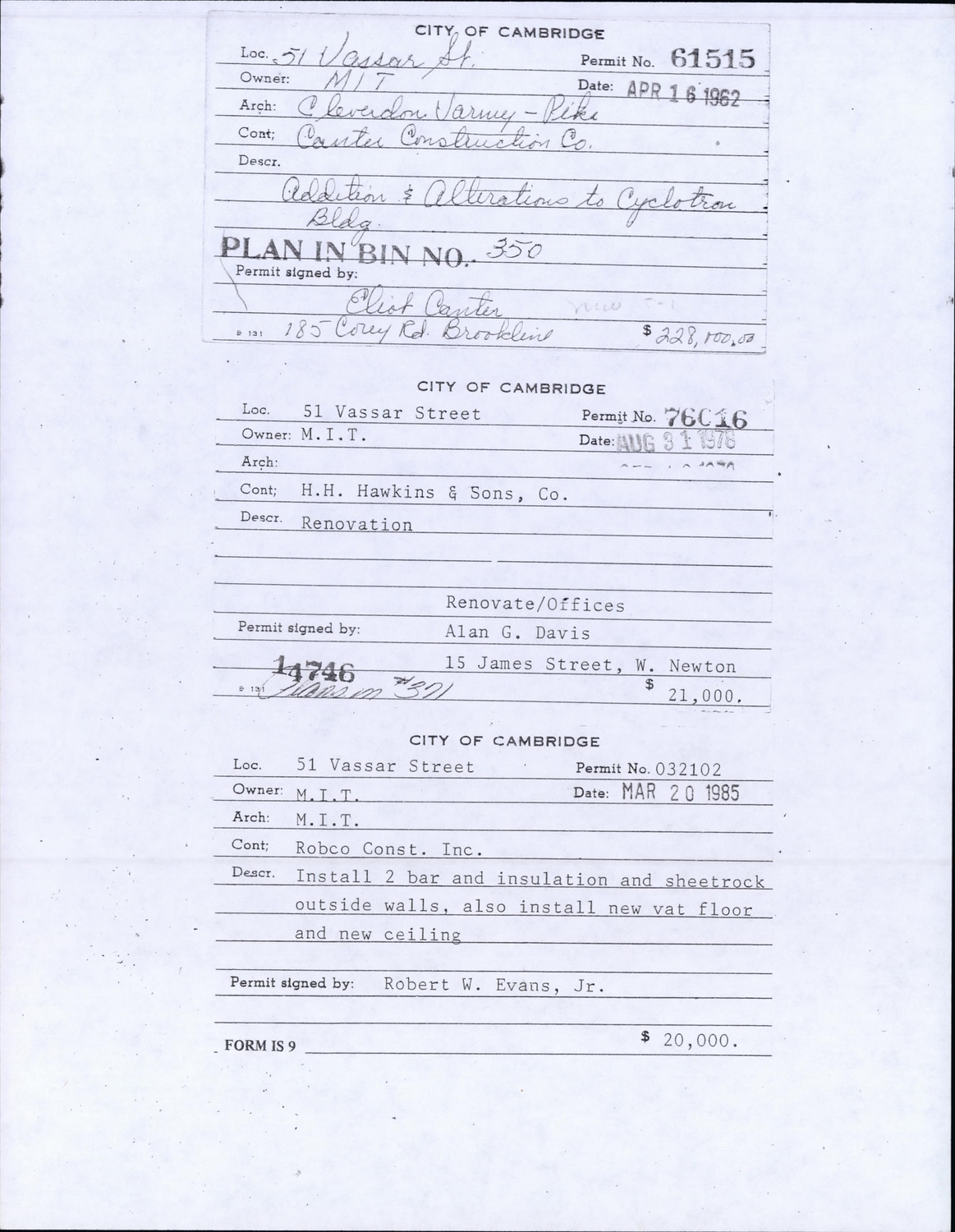51 Vassar St - MIT Bldg 54 - Cyclotron - Supplemental Material
