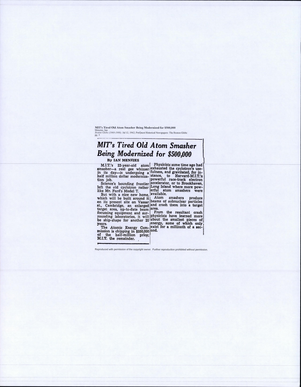 51 Vassar St - MIT Bldg 54 - Cyclotron - Published Material