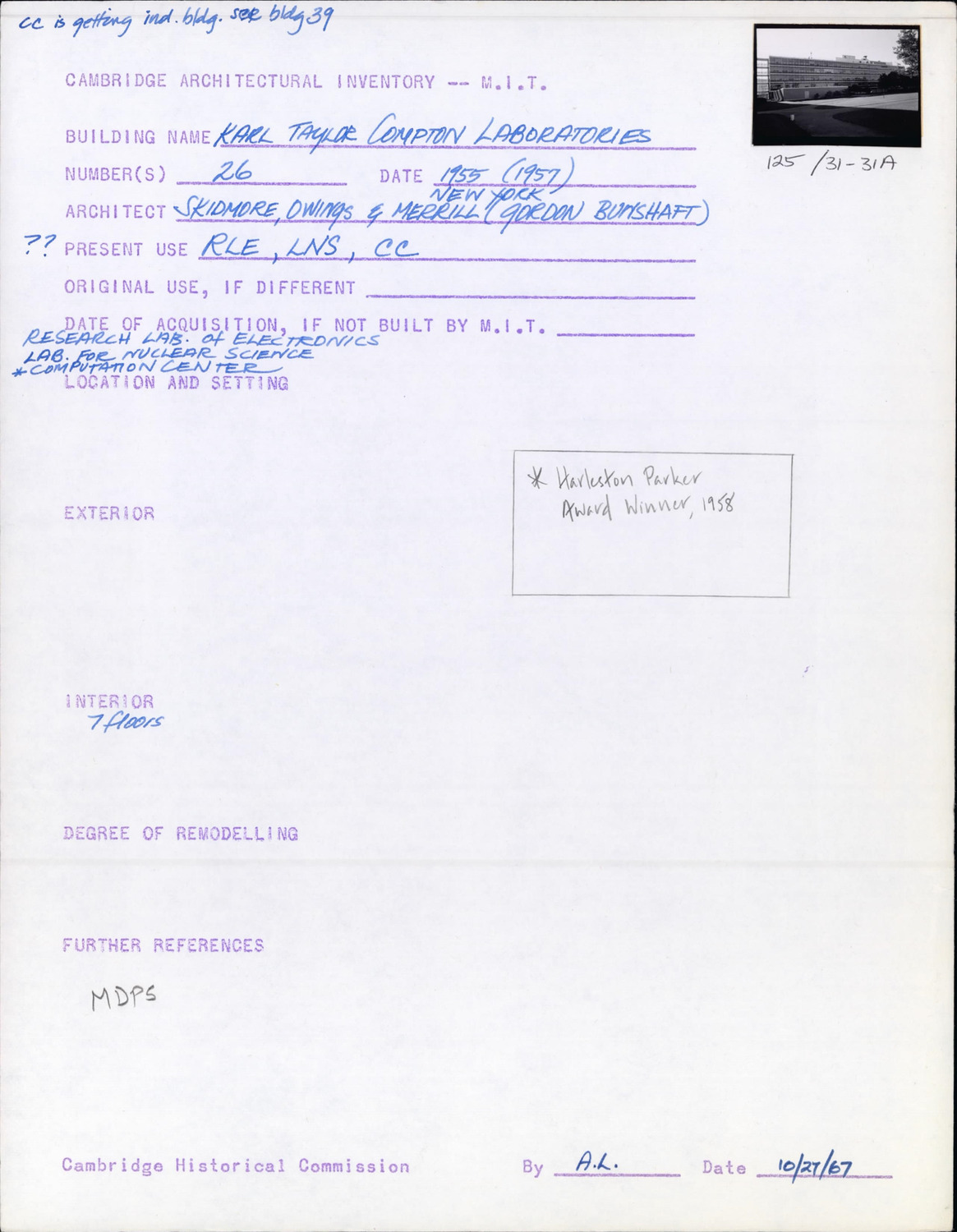 60 Vassar St - MIT Bldg 26 - Compton Laboratories - Architectural Inventory Form
