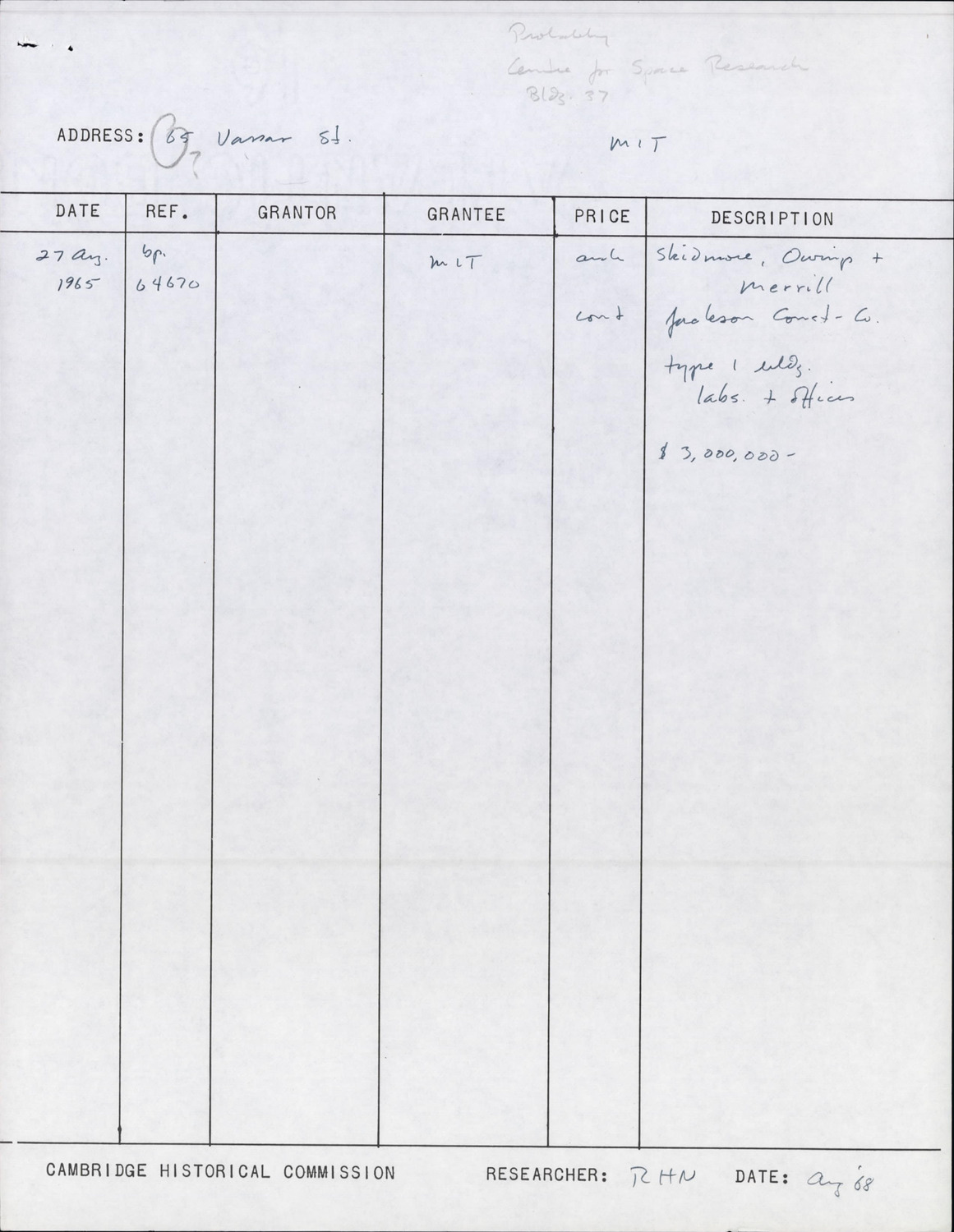 70 Vassar St - MIT Bldg 37 - Center for Space Research - Research Form