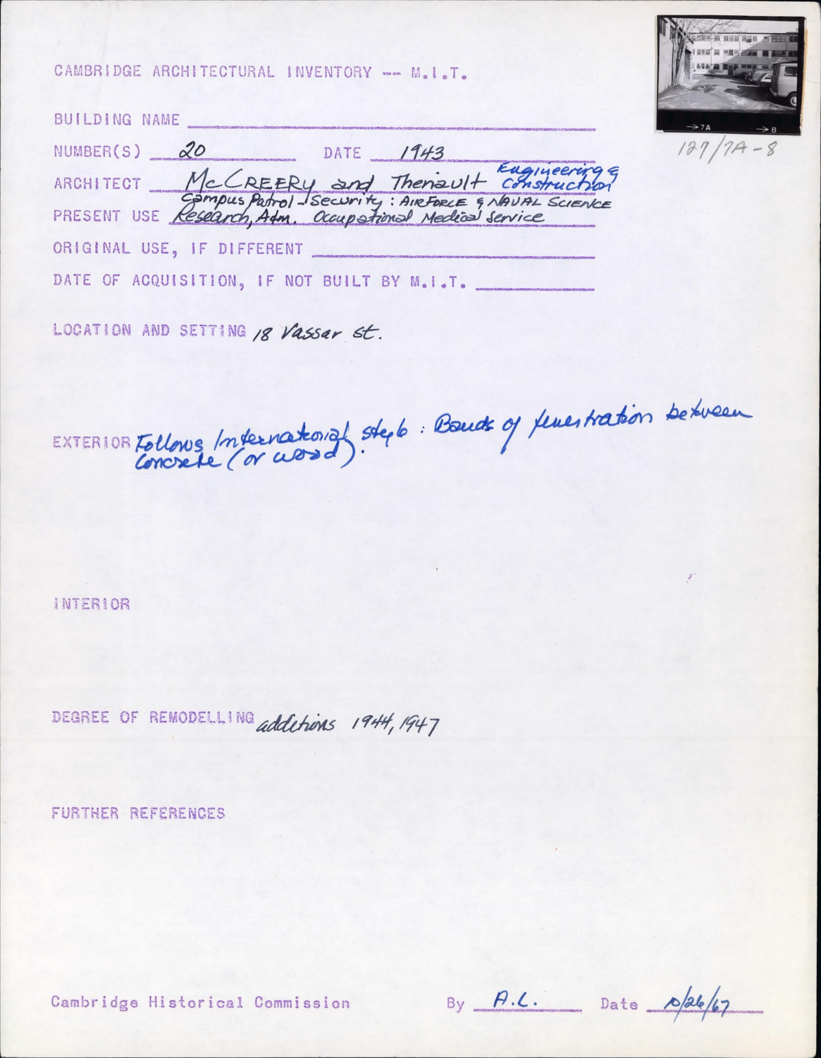18 Vassar St - MIT Bldg 20 - Architectural Inventory Form
