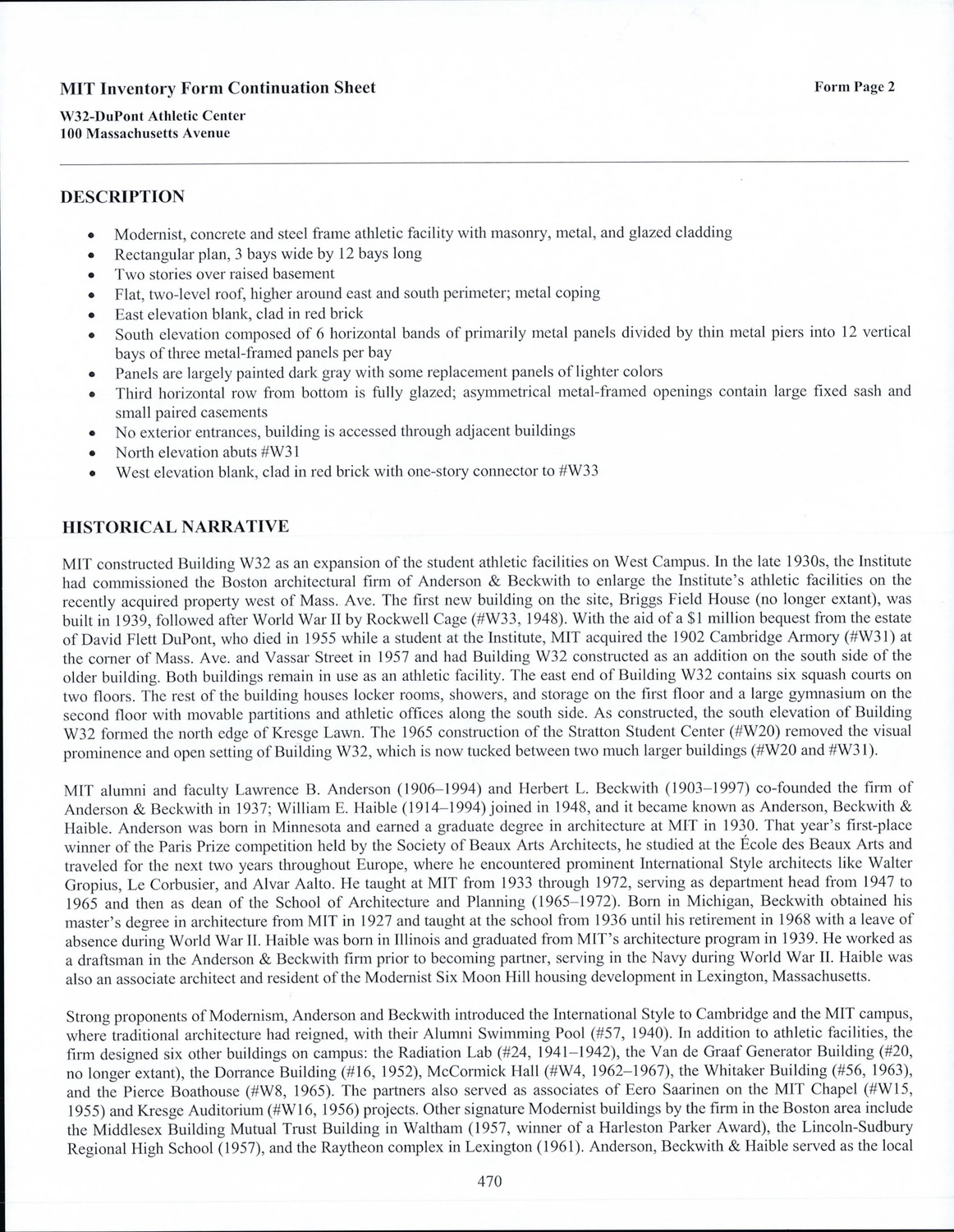 100 Massachusetts Ave - MIT Dupont Athletic Center - Research Form