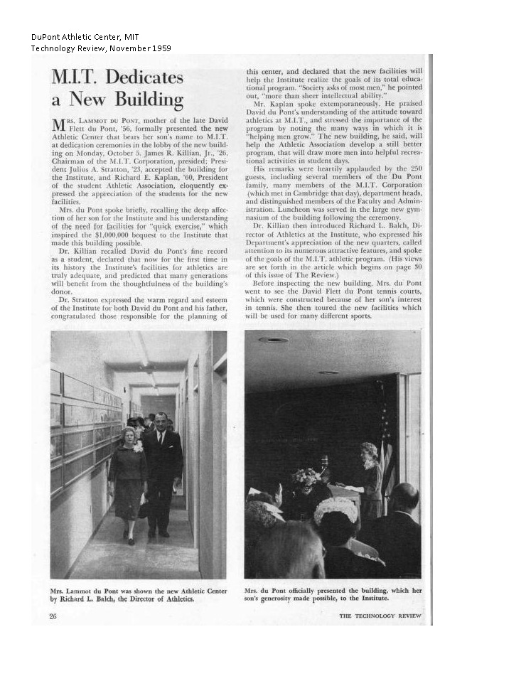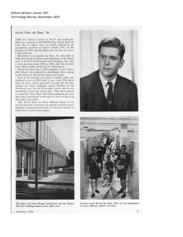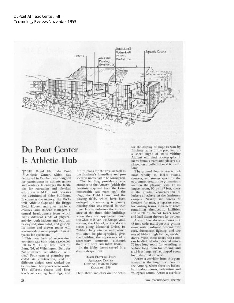 100 Massachusetts Ave - MIT Dupont Athletic Center - Published Material