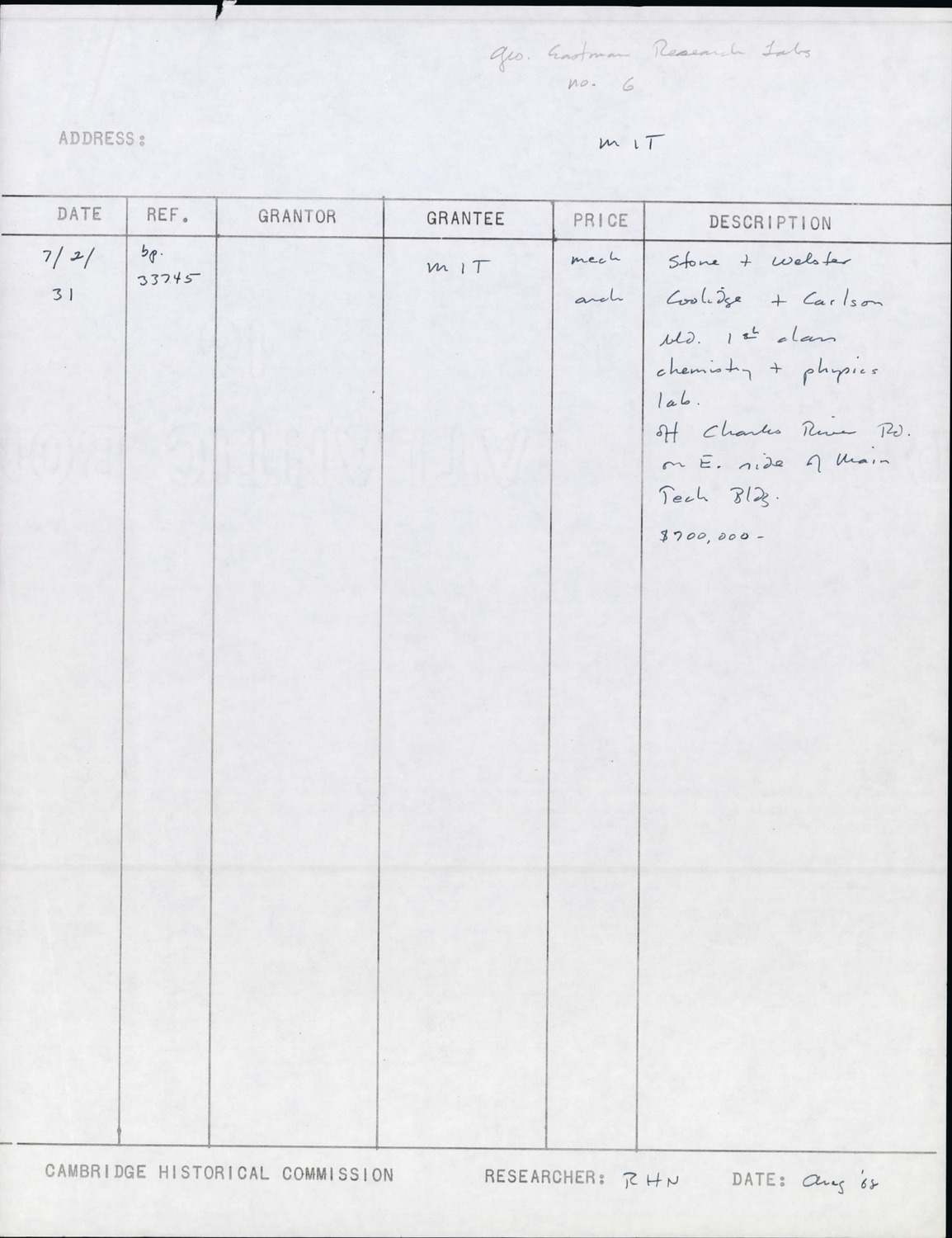 182R Memorial Dr - MIT Bldg 6 - Eastman Laboratories - Research Form