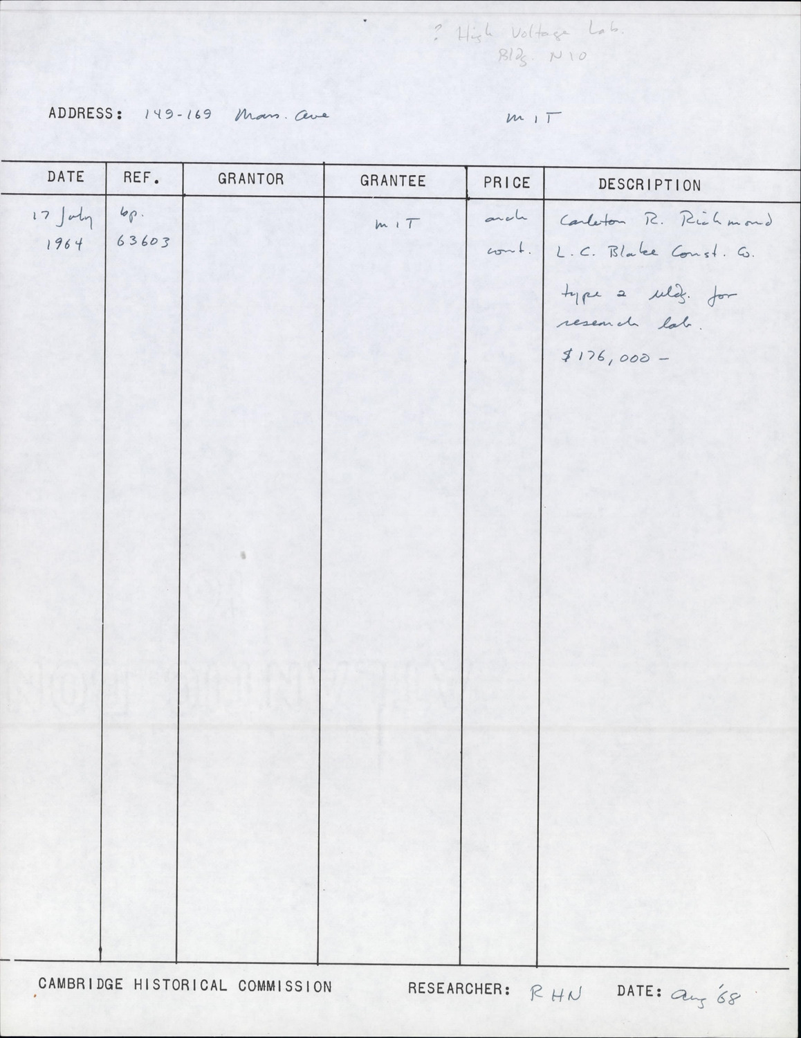 115 Massachusetts Ave - MIT Bldg N10 - Research Form