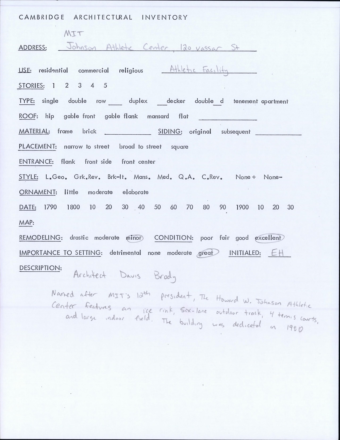 120 Vassar St - MIT Johnson Athletic Center - Architectural Inventory Form