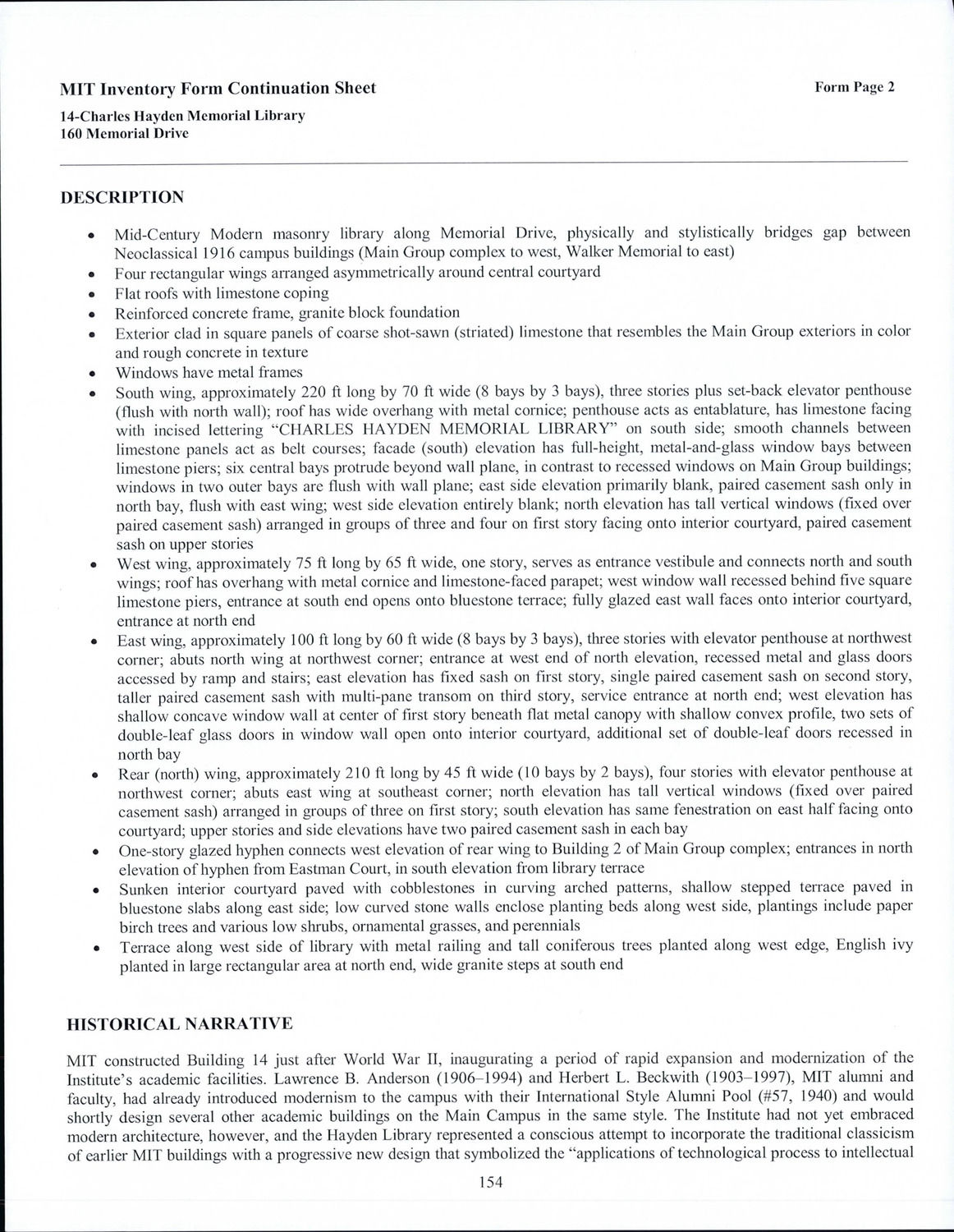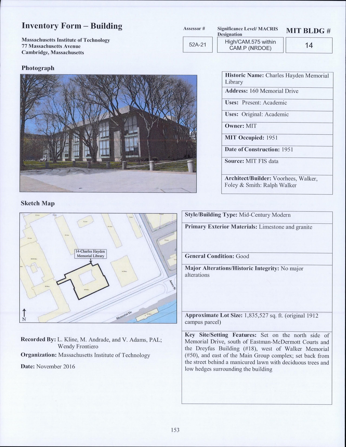 170 Memorial Dr - MIT Bldg 14 - Hayden Library - Research Form