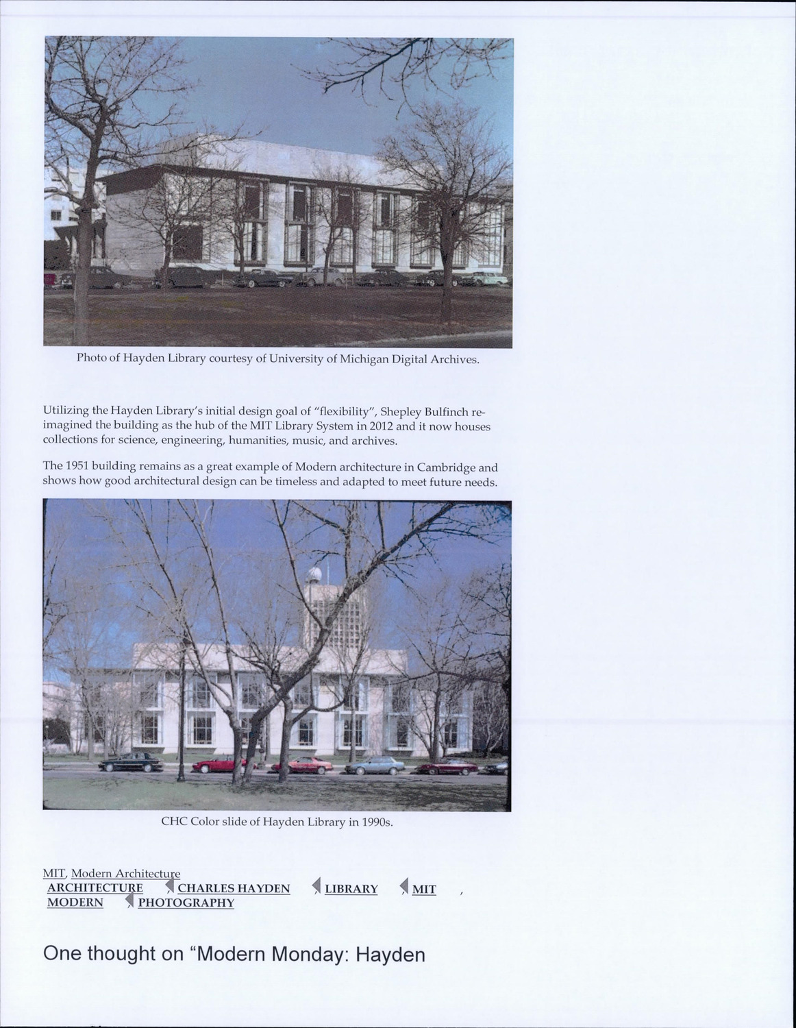 170 Memorial Dr - MIT Bldg 14 - Hayden Library - Published Material