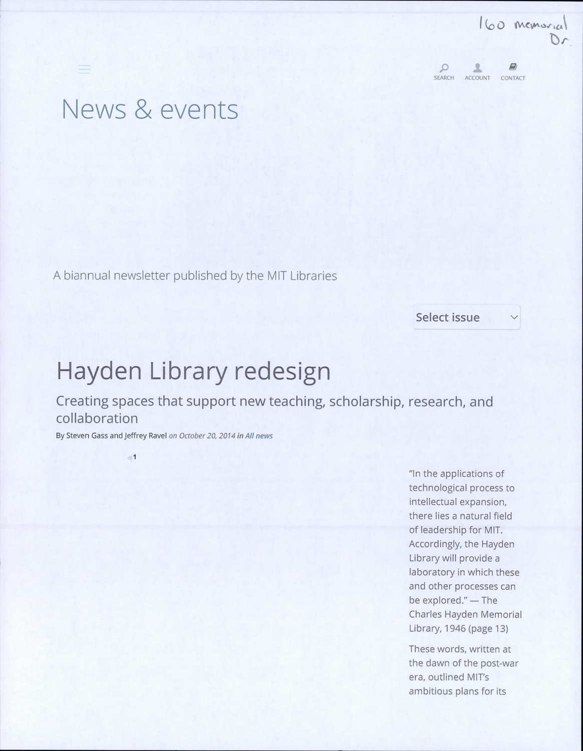 170 Memorial Dr - MIT Bldg 14 - Hayden Library - Published Material