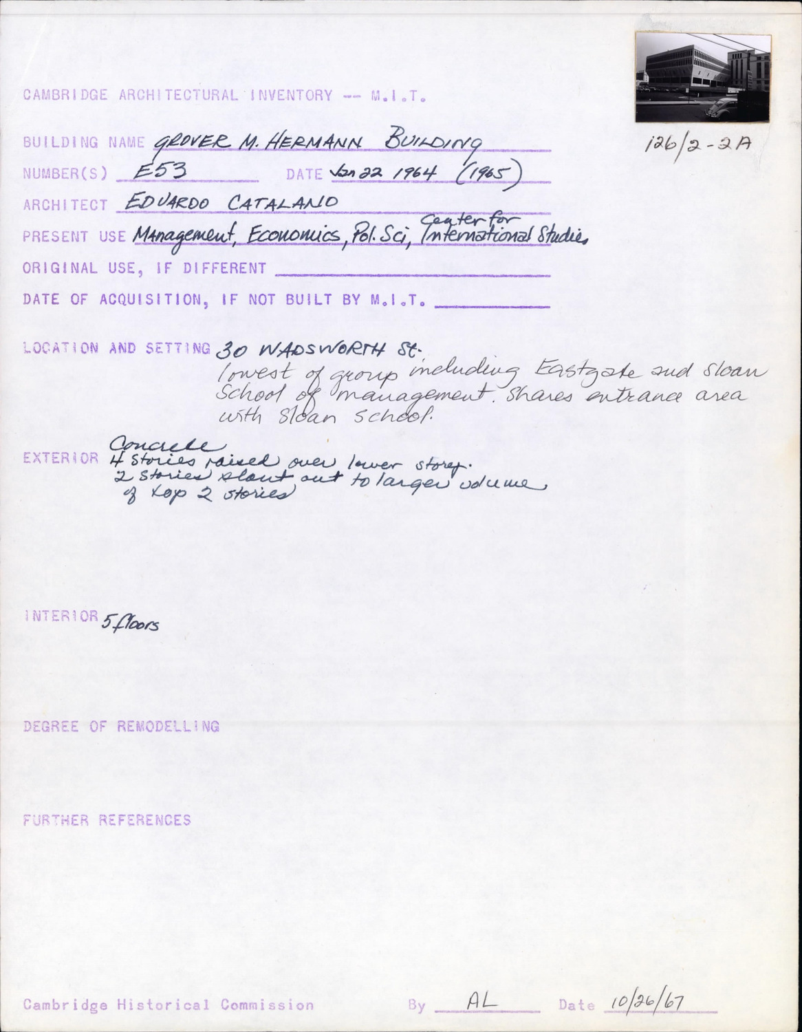 30 Wadsworth St - MIT Bldg E53 - Hermann Building - Architectural Inventory Form
