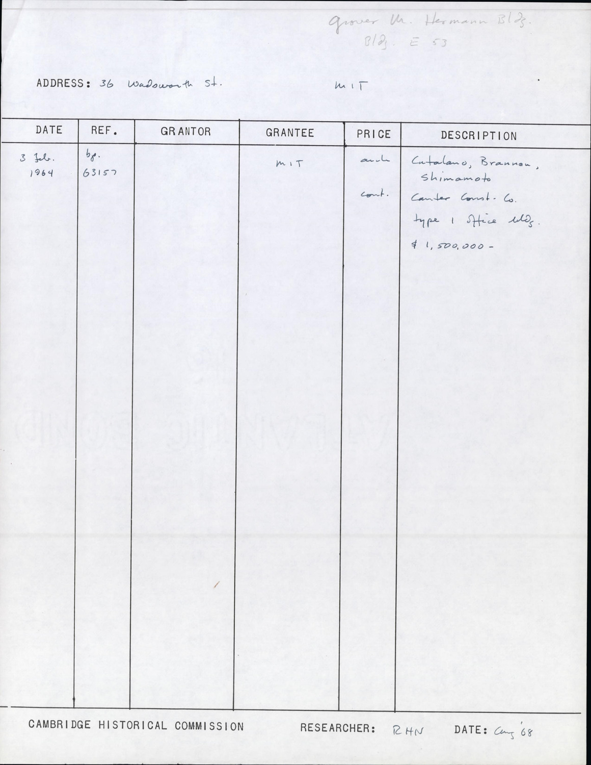30 Wadsworth St - MIT Bldg E53 - Hermann Building - Research Form