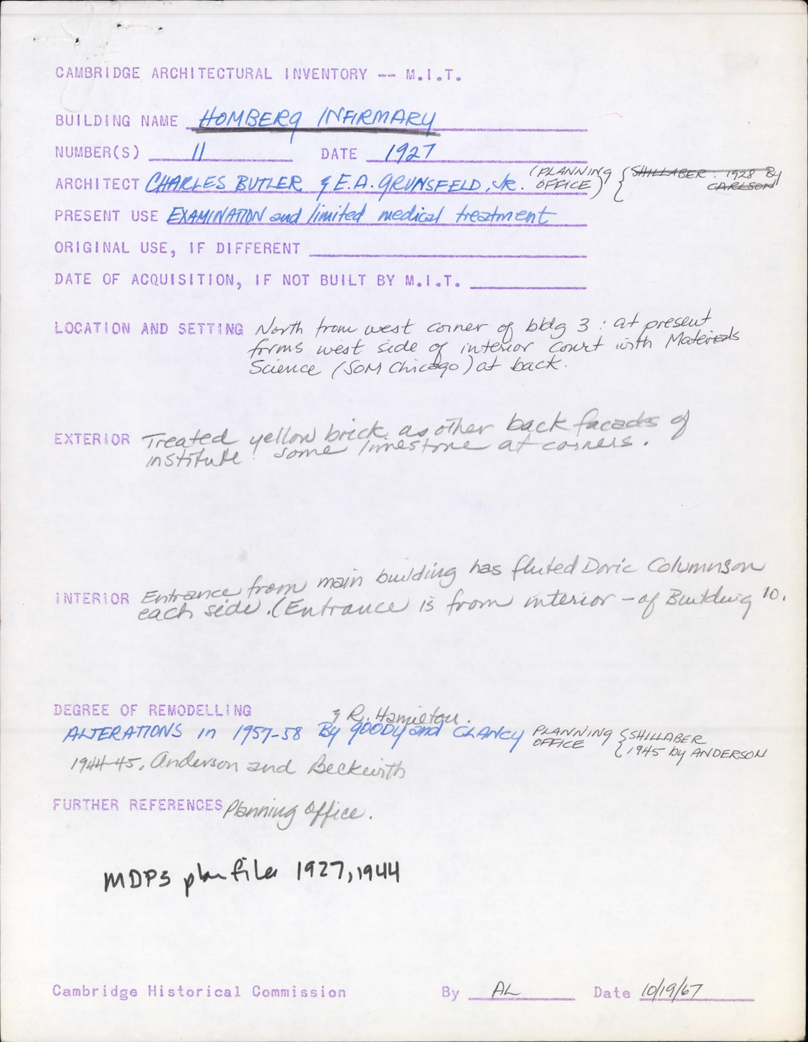 77R Massachusetts Ave - MIT Bldg 11 - Holmberg Building - Architectural Inventory Form