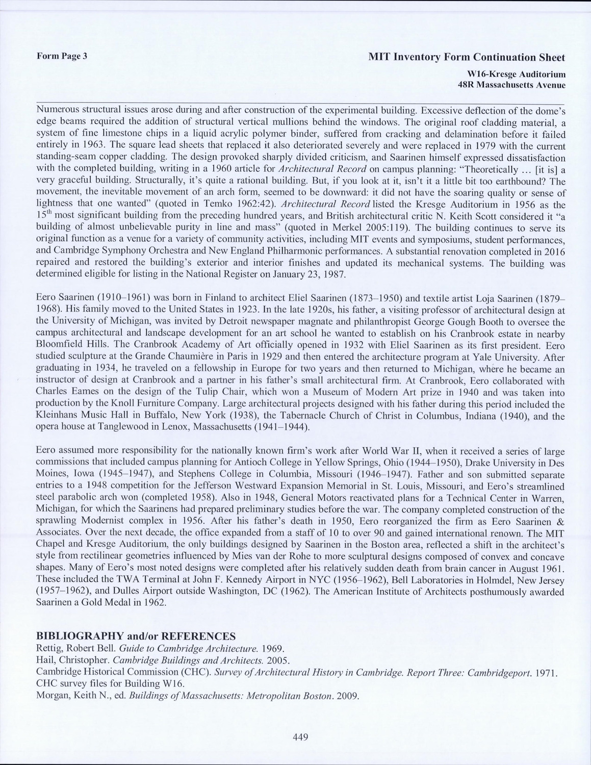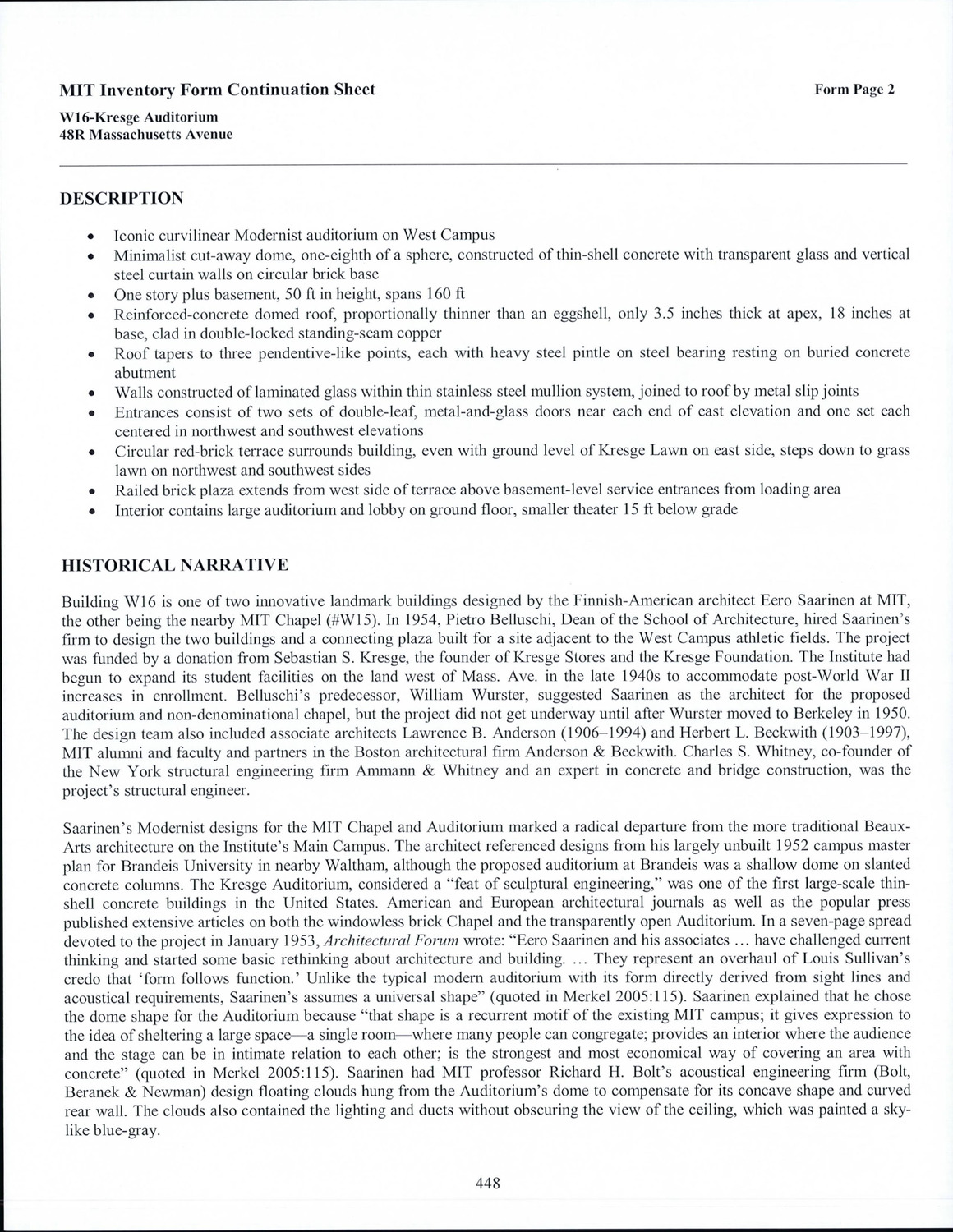 48R Massachusetts Ave - Kresge Auditorium - Research Form